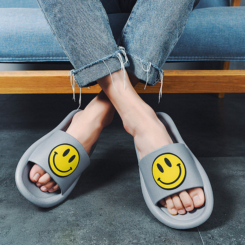 Smiley slippers summer new couple word slippers home indoor shoes men's bathroom non-slip bath thick bottom sandals