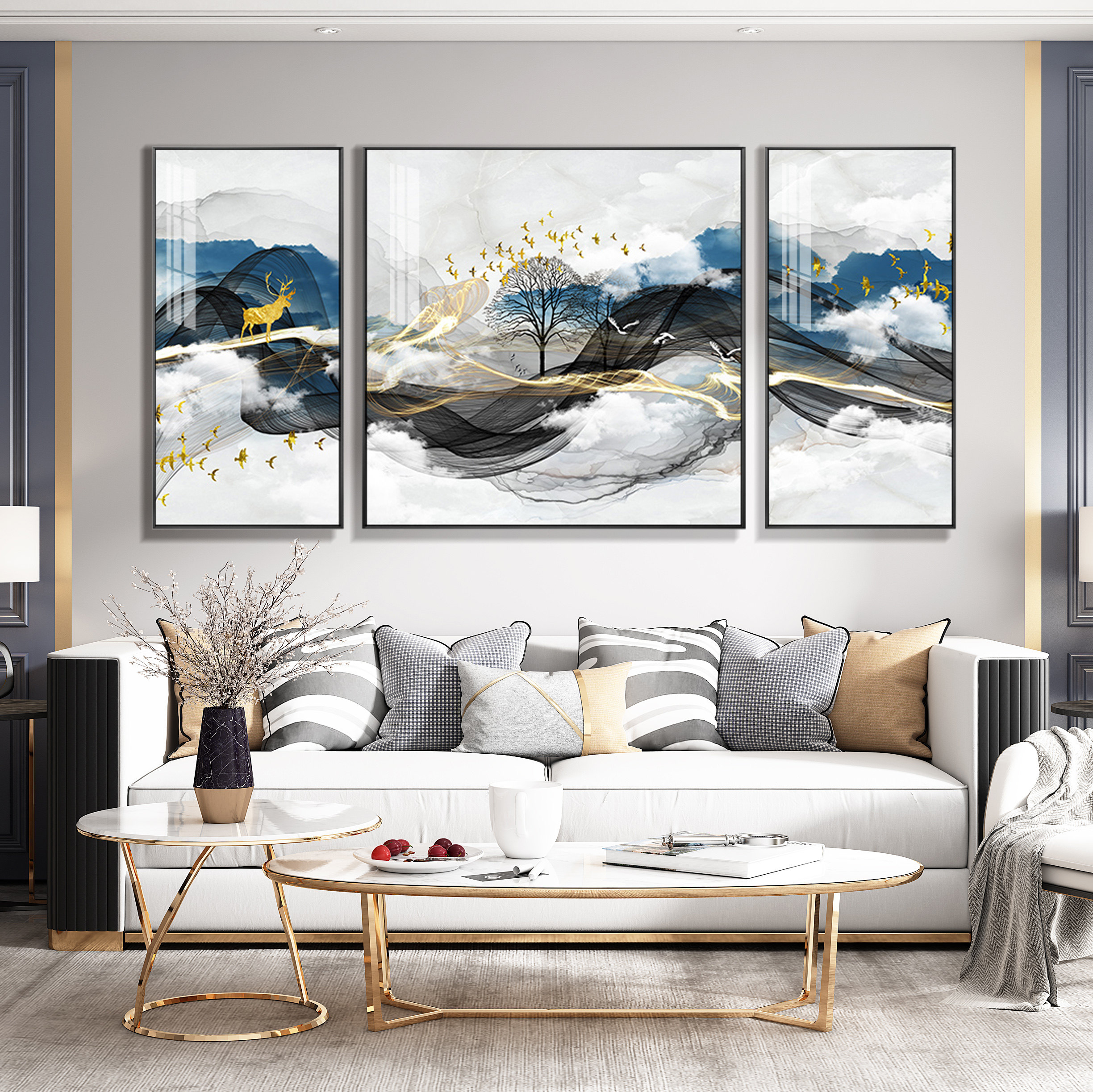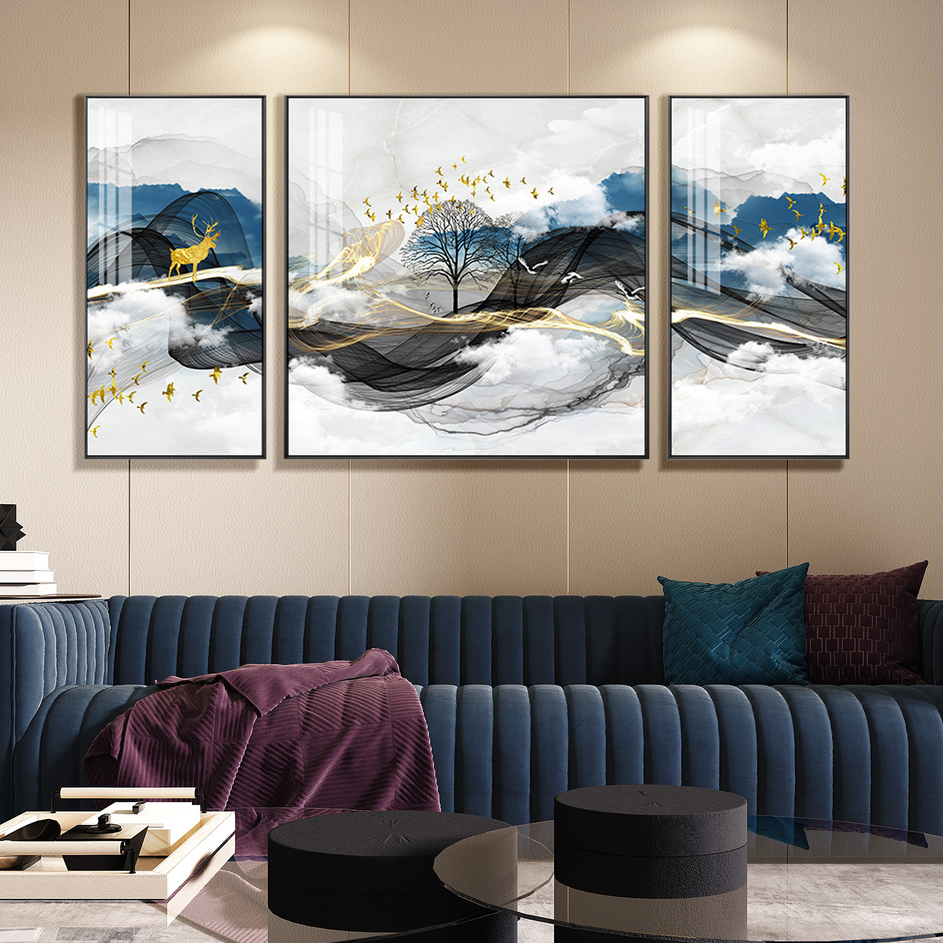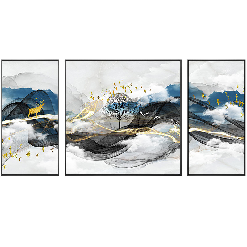 Crystal Porcelain Painting Modern Minimalist Living Room Decoration Painting Light Lavish Elk Deer Triple Sofa Background Wall Mural Painting New Chinese Hung Painting