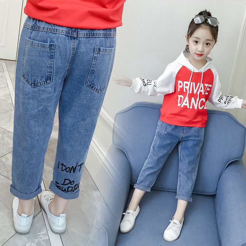 Girl Jeans 2022 new autumn Korean children's pants girl pants spring and autumn pie loose Harlem pants