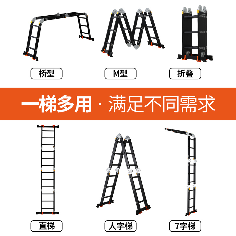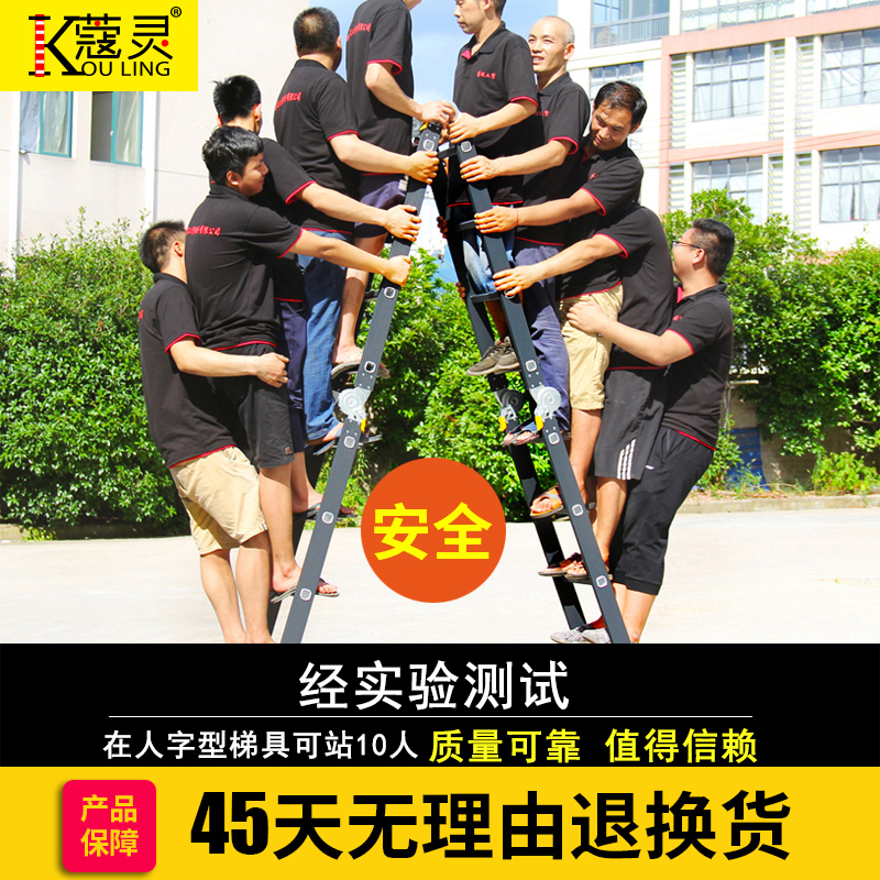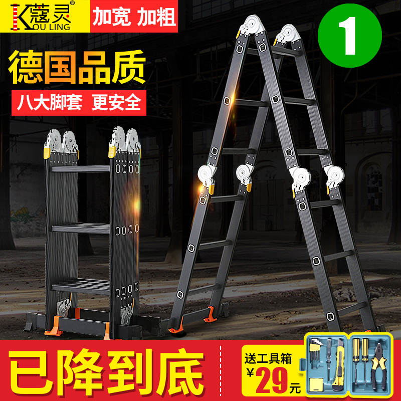 Household ladder folding telescopic ladder multifunctional attic elevator aluminum alloy herringbone ladder engineering ladder thickening and portable
