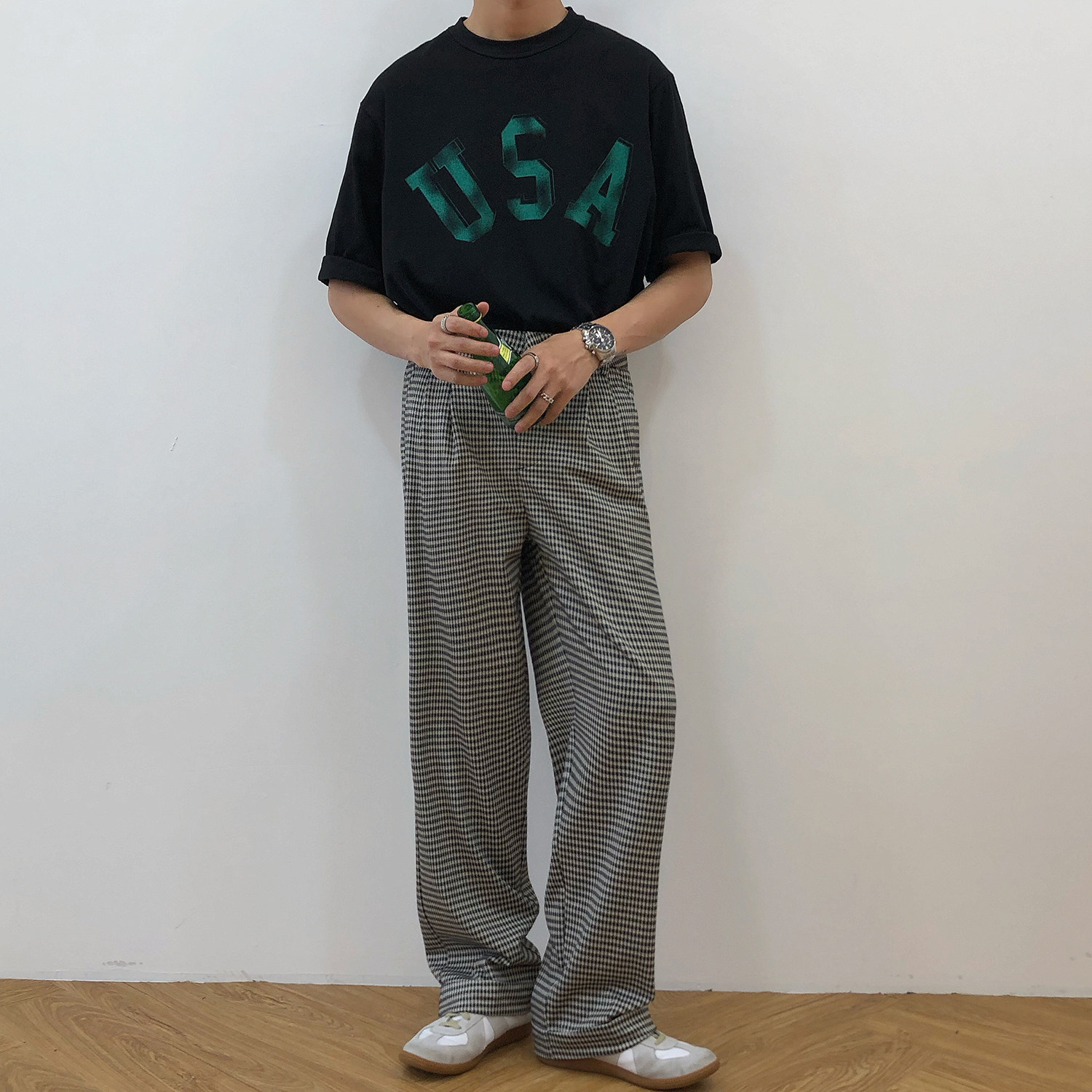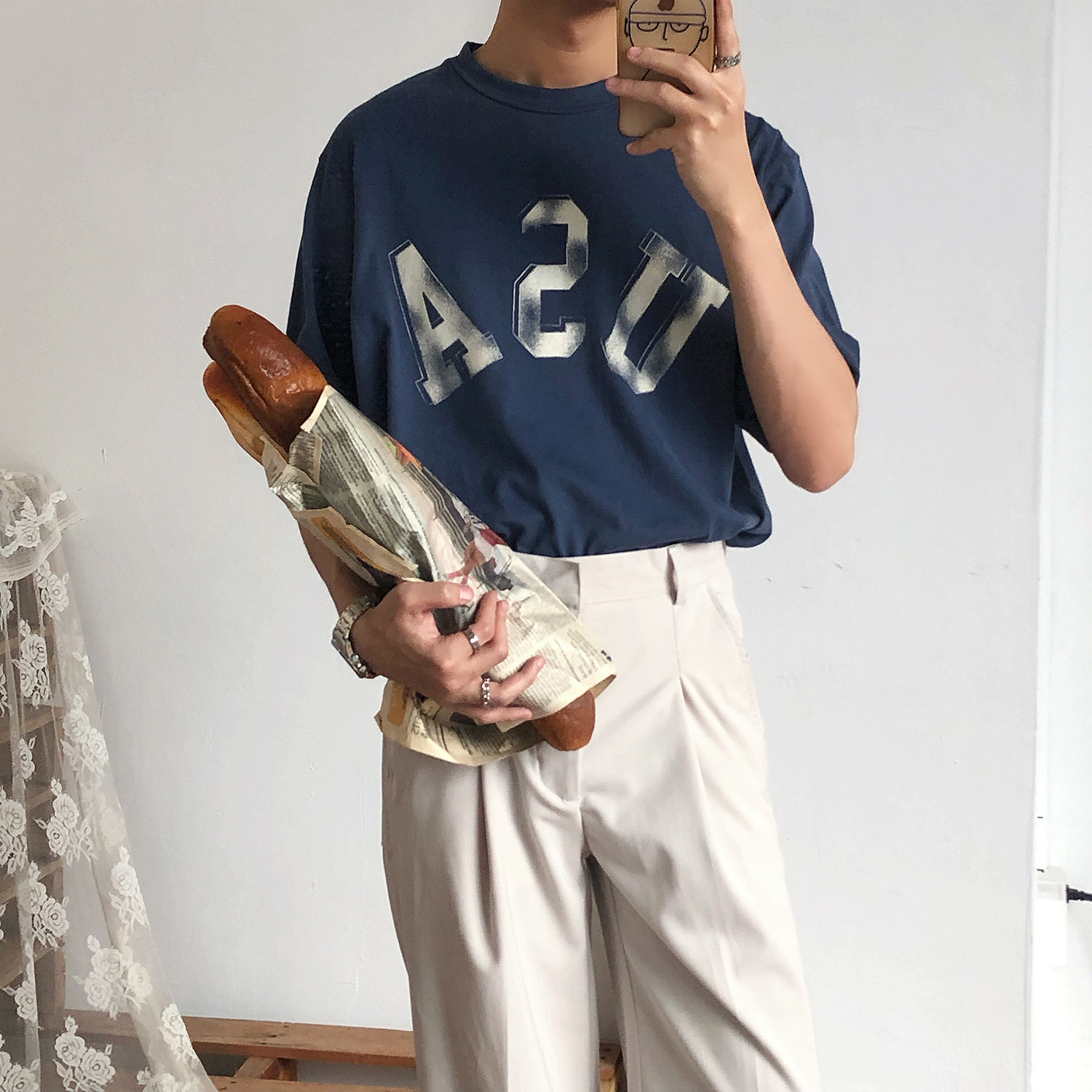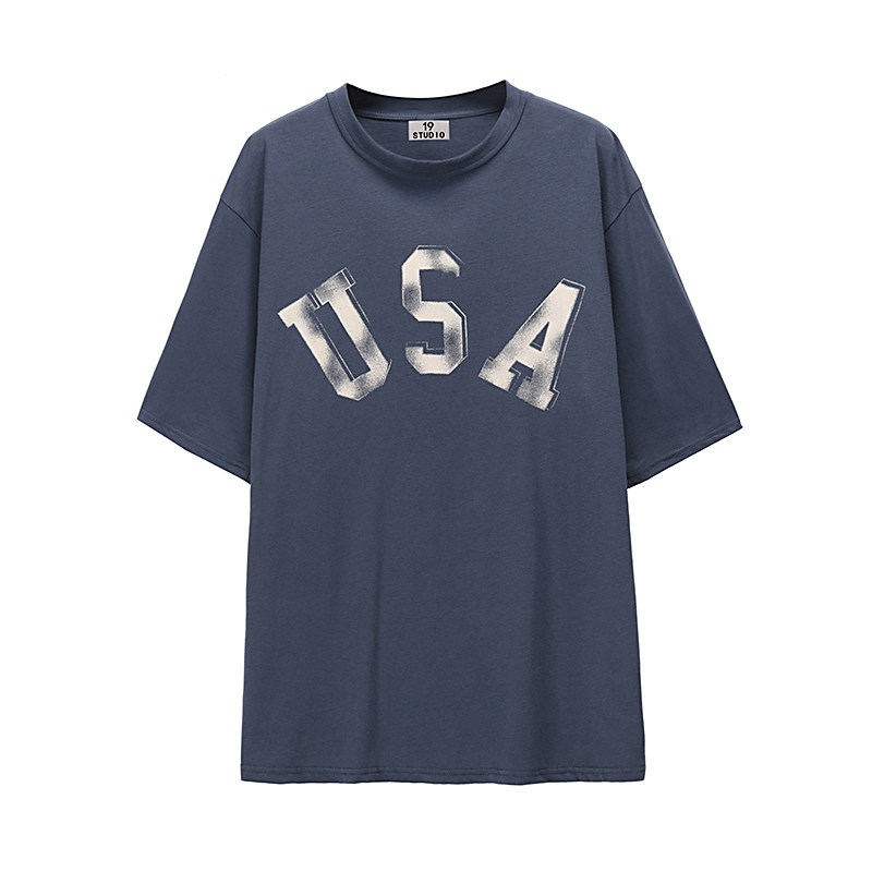 19studio Korean version Summer Trend Compassionate Retro Print USA Round Collar Couple Loose short sleeve T-shirt male and female