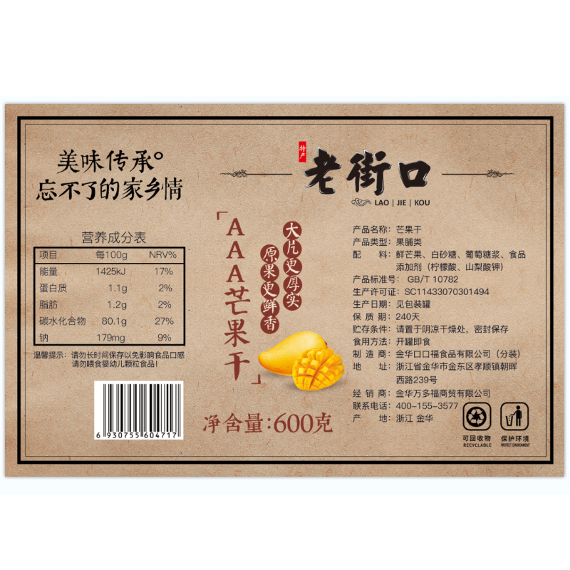 Old Street-canned dried mango 600g original cut original fragrant thick large ins net red snack mango slices dried fruit