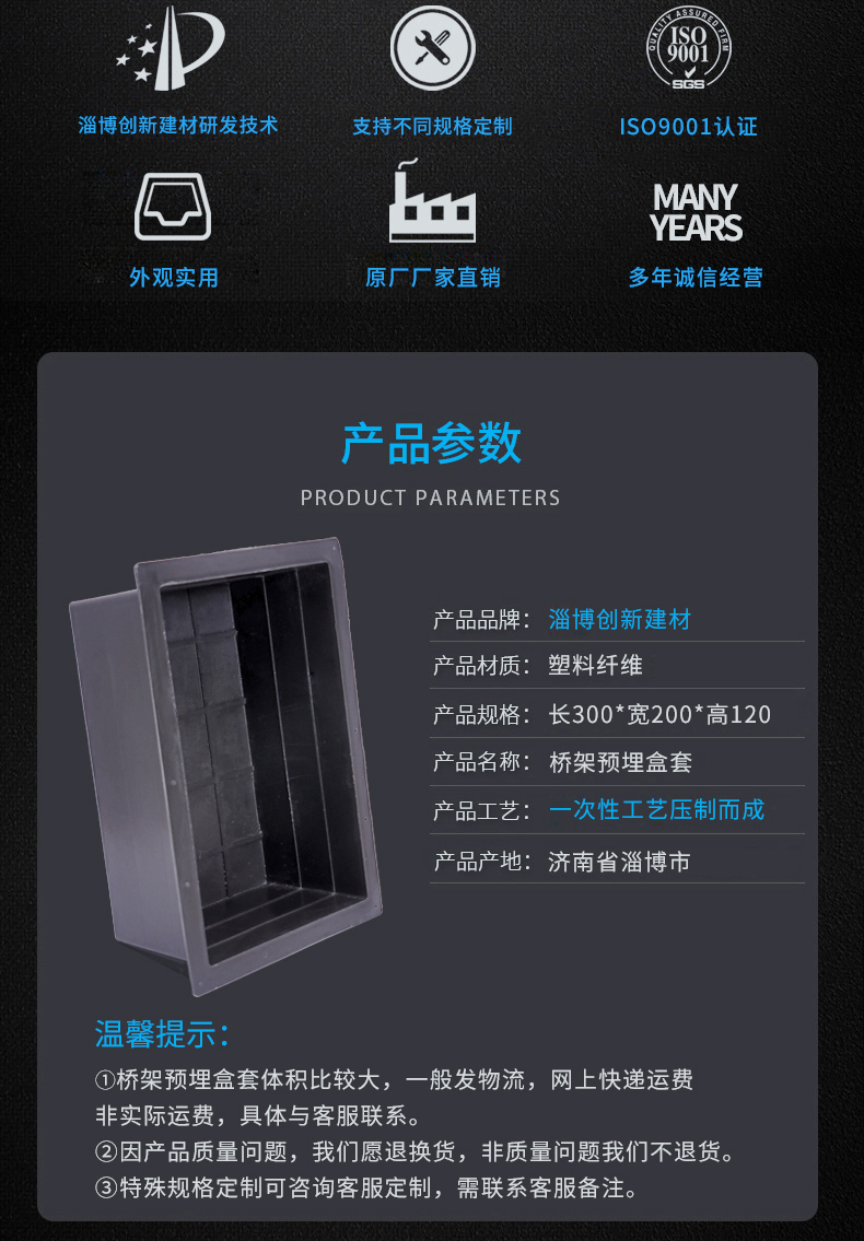 Bridge embedded square box PVC square box innovative building materials vent square mouth hole reserved box Shandong province direct sales