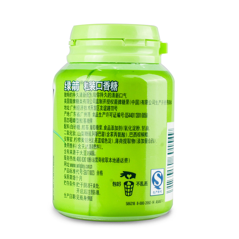 Green Arrow chewing gum 64g bottled mint green tea flavor fresh breath party KTV white-collar portable travel