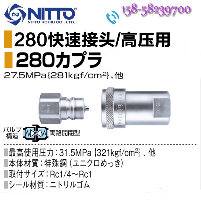 Nitto quick connector NITTO KOHKI Nitto high pressure quick connector 280-8S special steel normal temperature