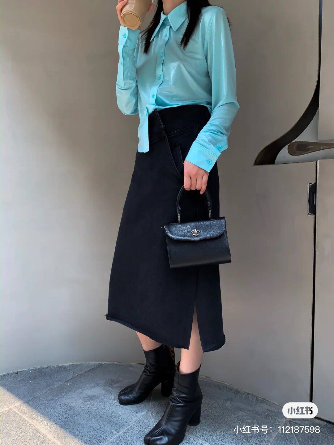 Spot We11done Sky Blue Metal Sheet Long Sleeved Stretch Shirt