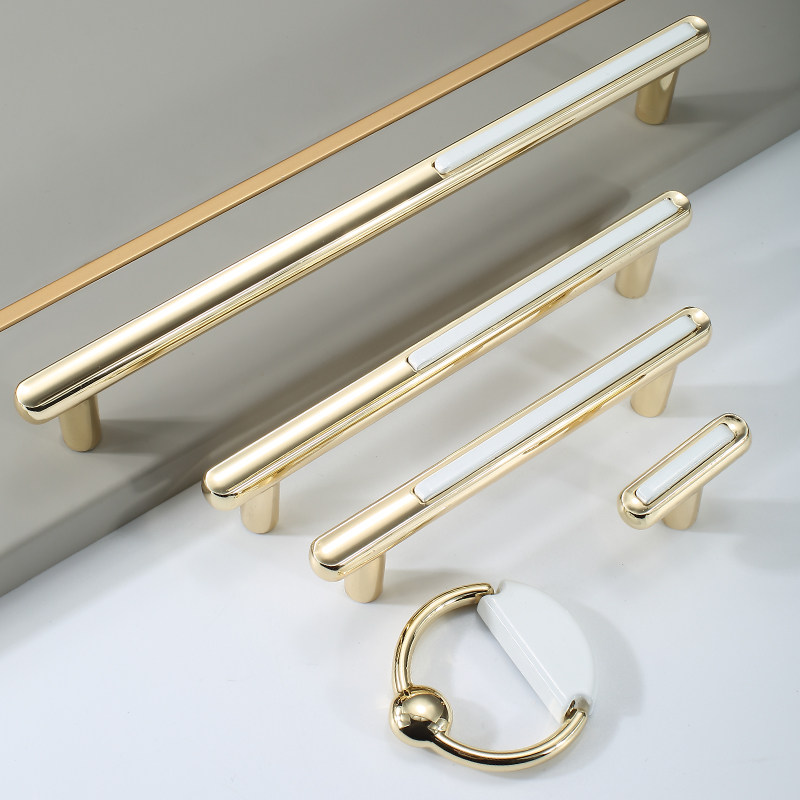 Golden cabinet door handle light luxury white wardrobe cabinet handle door handle modern simple cabinet drawer high-grade