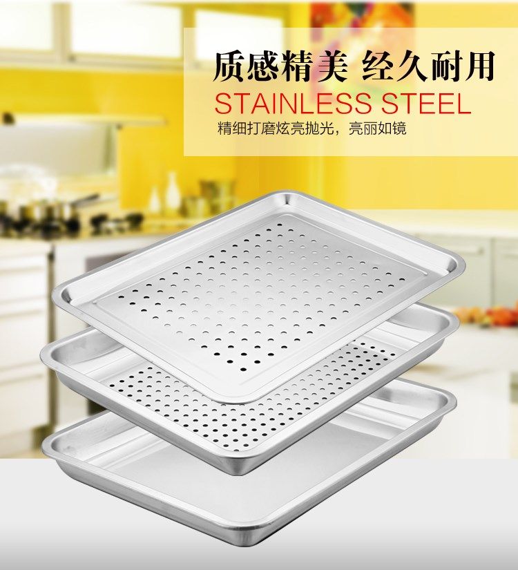 Stainless steel baking tray Rectangular commercial steamer special tray Baking oven barbecue tray Punching Korean baking tray