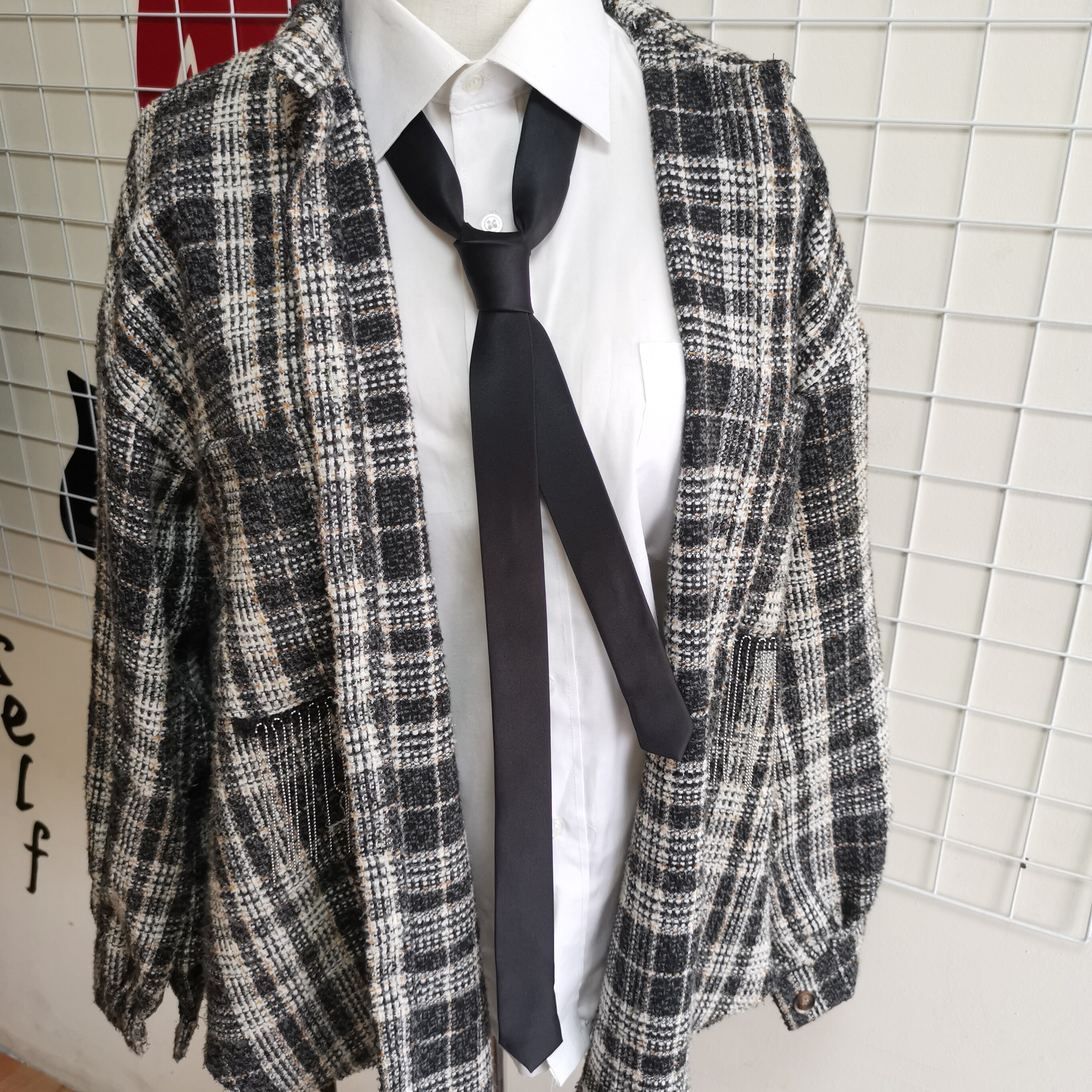 (3cm ultra-narrow)Hand-played black Korean version of the tie for men and women born matt flat head personality Japanese wild ins tide