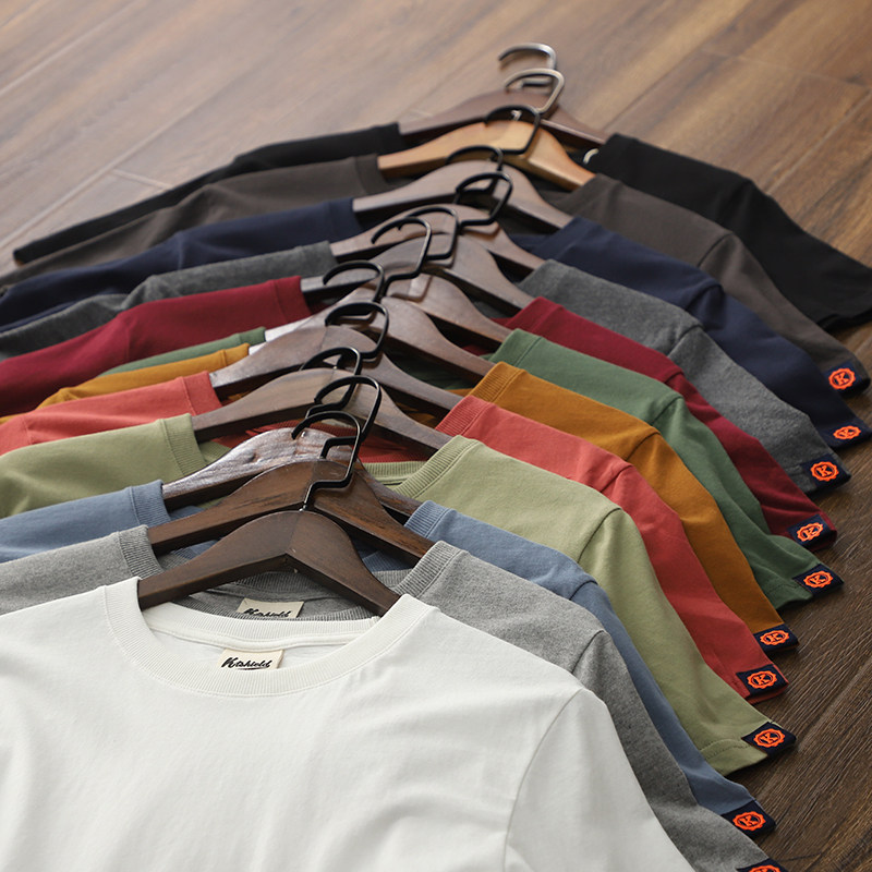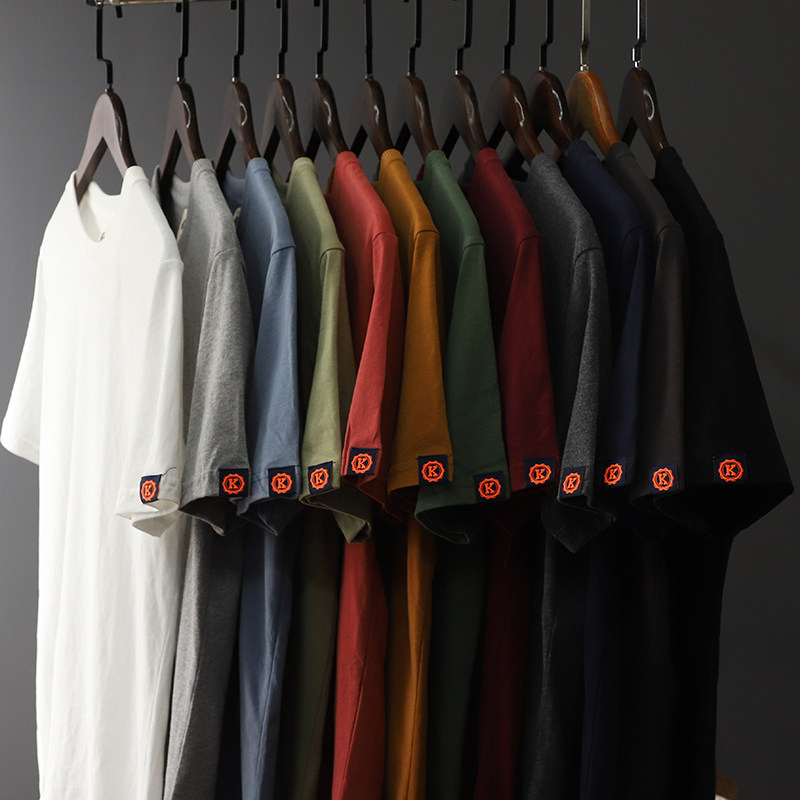 T2605 A few pieces are not too many HK tide brand summer solid color brushed round neck bottoming short-sleeved T-shirt men