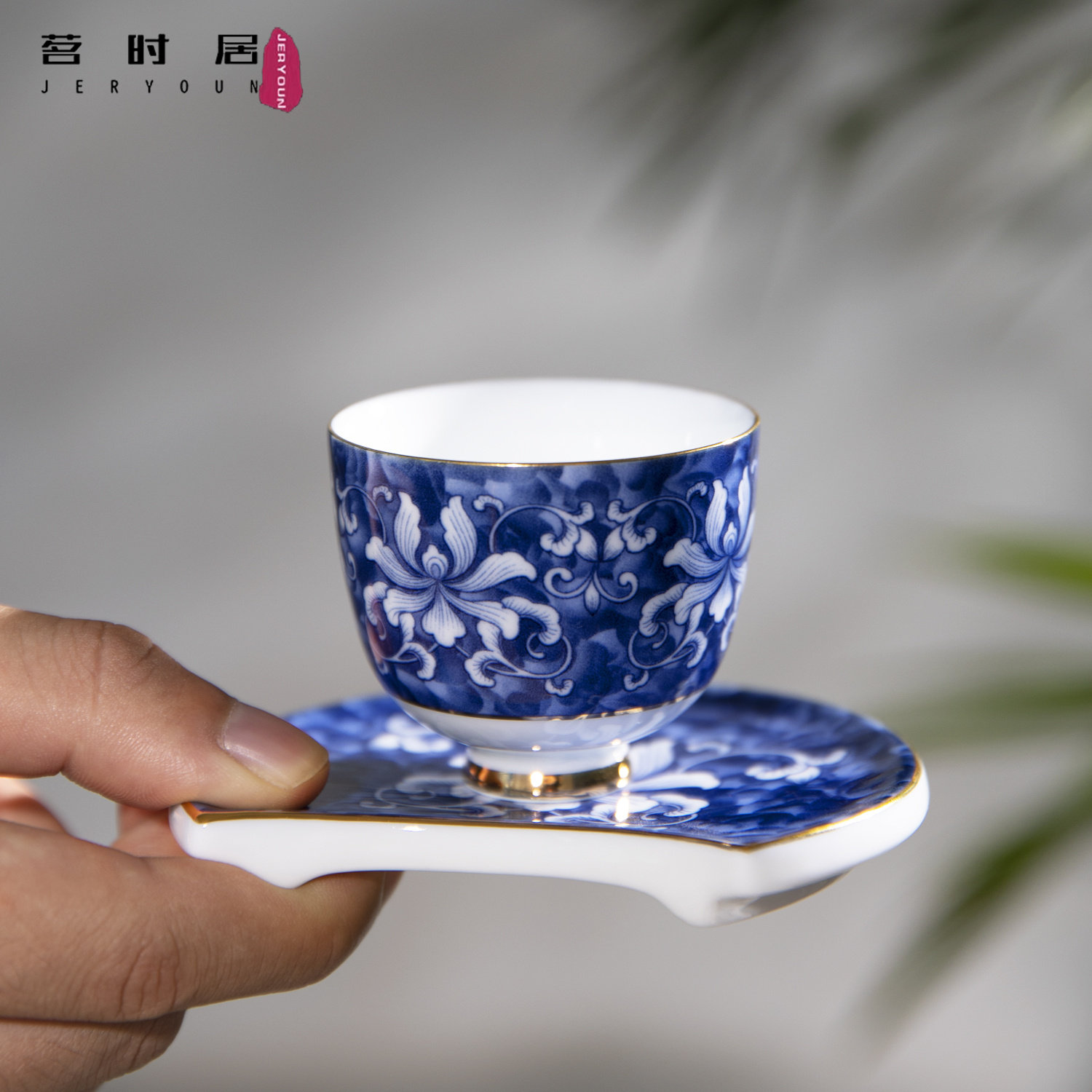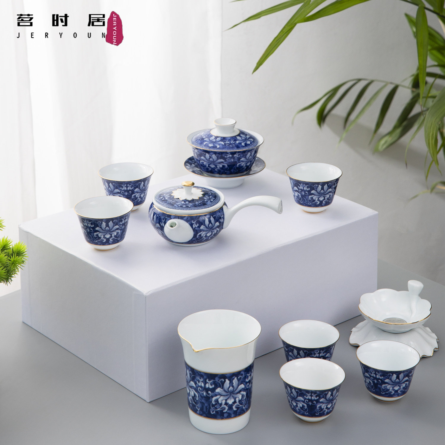 Blue and white elegant rhyme-covered bowl with side handle pot 11 in blue and white-side handle pot with tea pot 11 in blue and white round rhyme-covered bowl with coaster 16 in