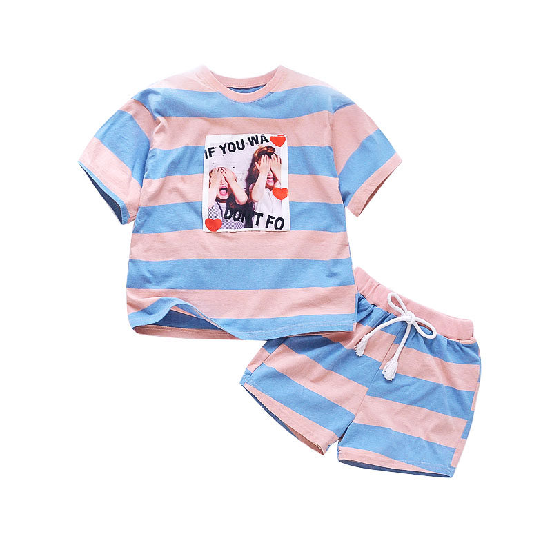 Girl 2021 New Summer Dress Striped Cotton Linen Two Sets Korean Version Short Sleeve Shorts Casual Sports Hot Pants Suit Tide