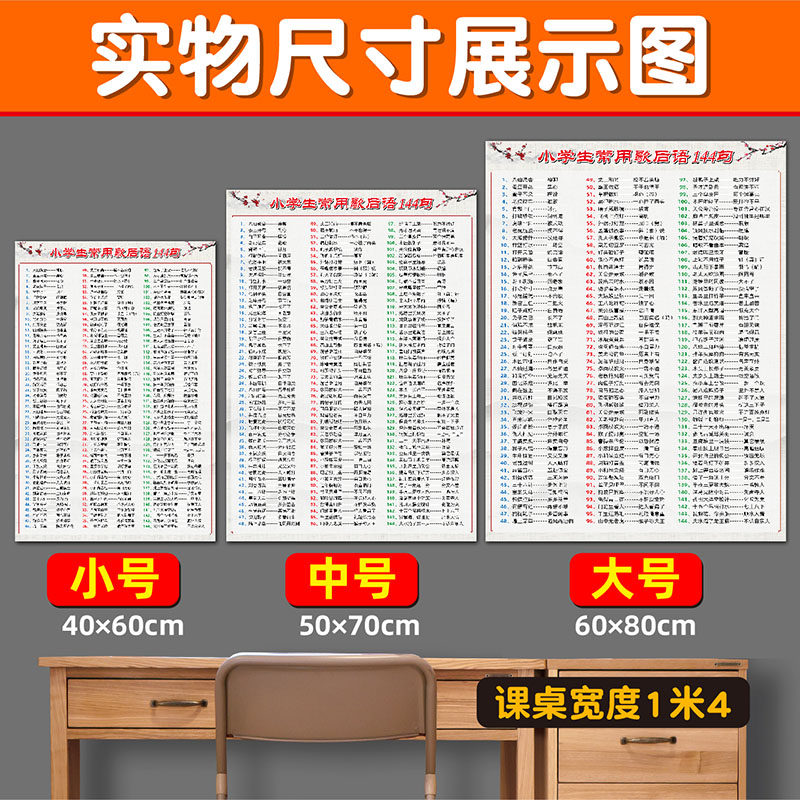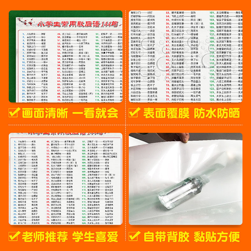 Elementary school students often use 144 idioms and common sayings in ancient Chinese literature waterproof wall stickers poster learning map