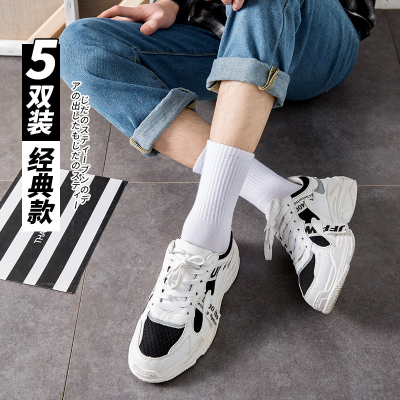 Socks men's stockings spring and autumn pure cotton breathable sweat-absorbing deodorant mid-tube summer socks black high tube trend white