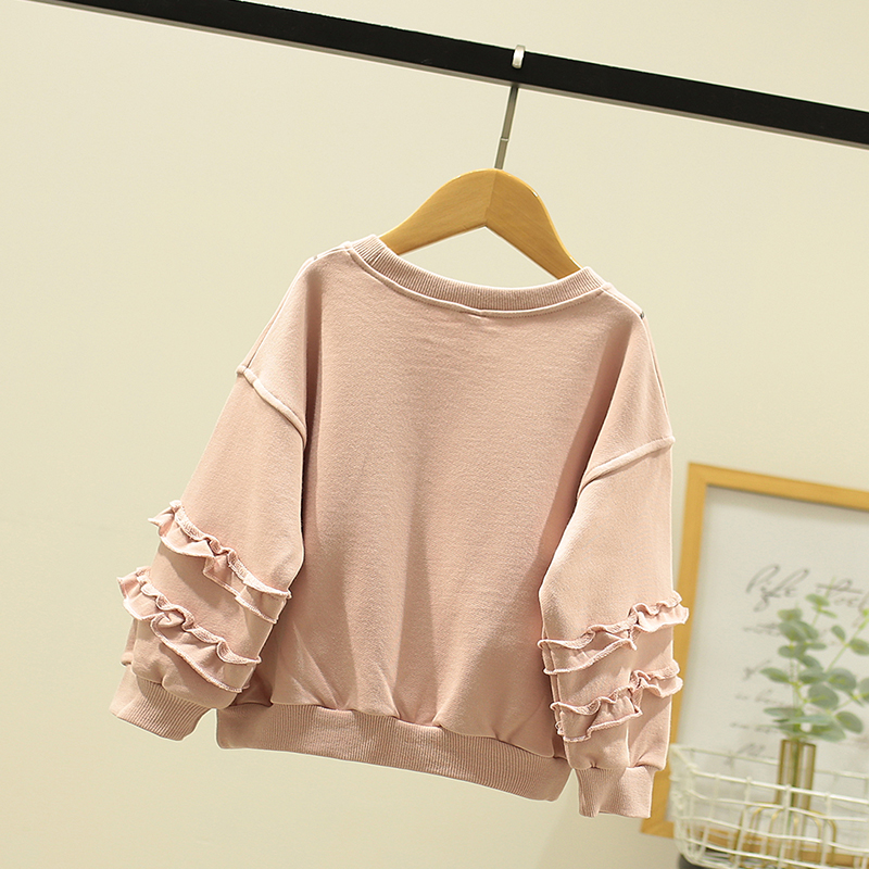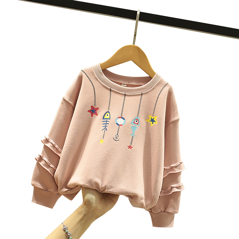 Lashabelle children's clothing girl's thick T-shirt spring clothing 2022 new foreign sends children round collar spring autumn sets to hit bottom blouses