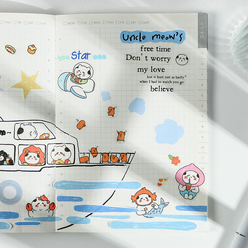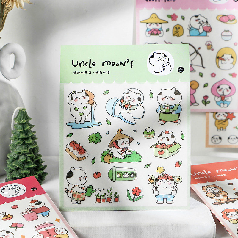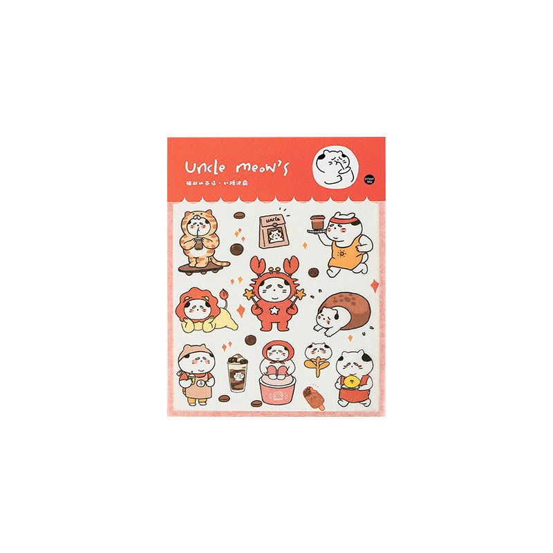 Uncle cat milk tea shop and paper stickers salt cute cartoon cat material small pattern hand account diy decorative stickers