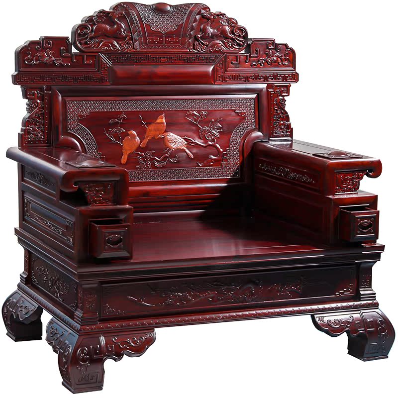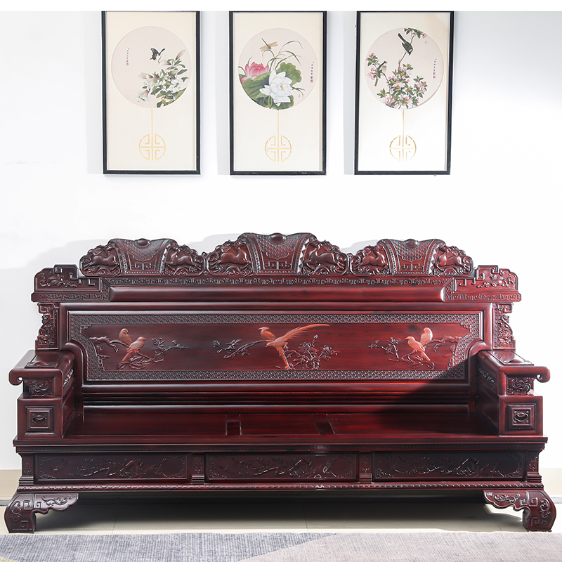 Mahogany sofa African rosewood panel carved living room retro luxury villa solid wood sofa combination set