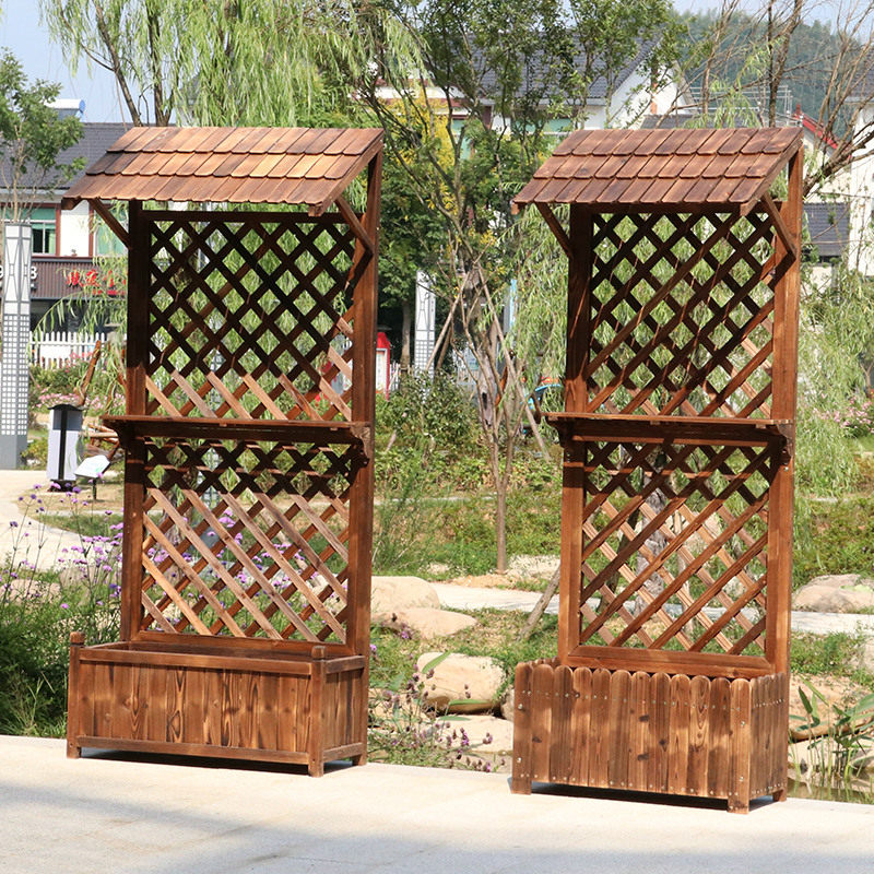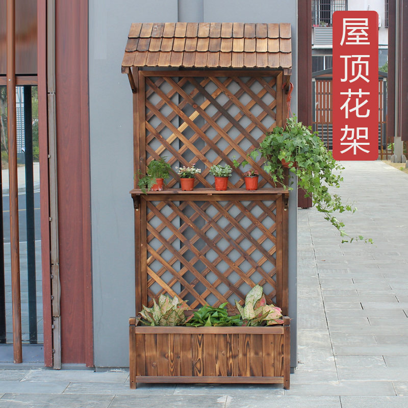 Carbonized anti-corrosion wood flower box wood planting box balcony flower slot climbing vine frame outdoor flower frame