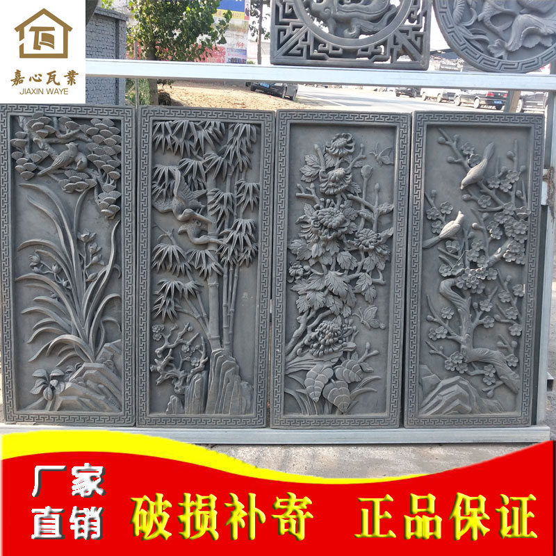 Caratric brick sculptures antique Chinese melan Zhukiju ancient built door head fan-shaped embossed screen vertical version 4-in-courtyard decoration-Taobao