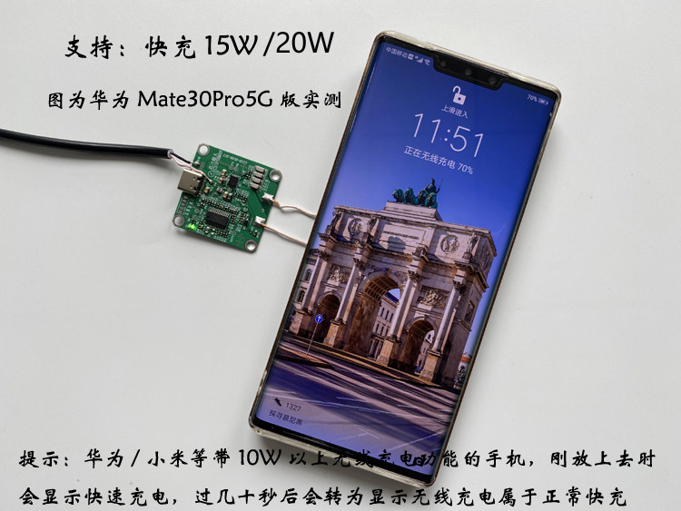 (20W high power) partition 10mm fast charging wireless charger transmitter module universal car furniture modification