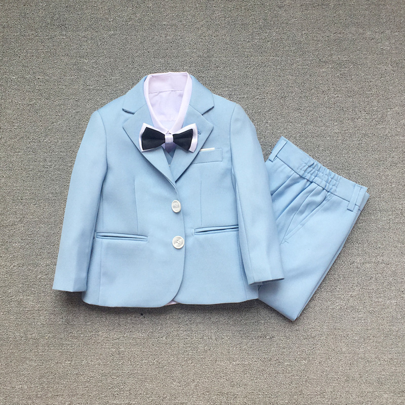 Light blue 4-piece set Coat, vest, trousers, bow tie, light blue 5-piece set