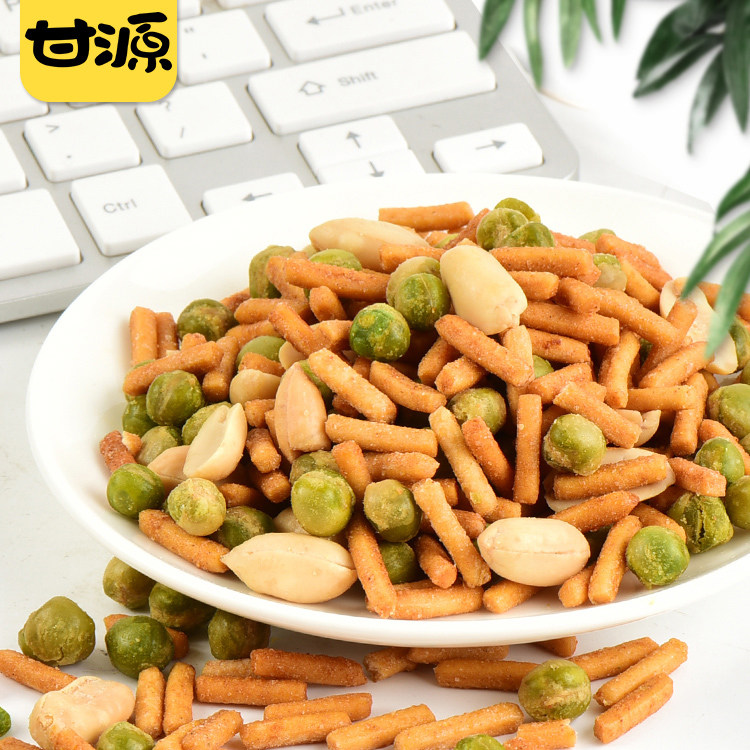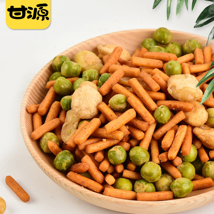 Peas, peanut kernels, wheat flour, vegetable oil, starch, sugar, seasonings, etc
