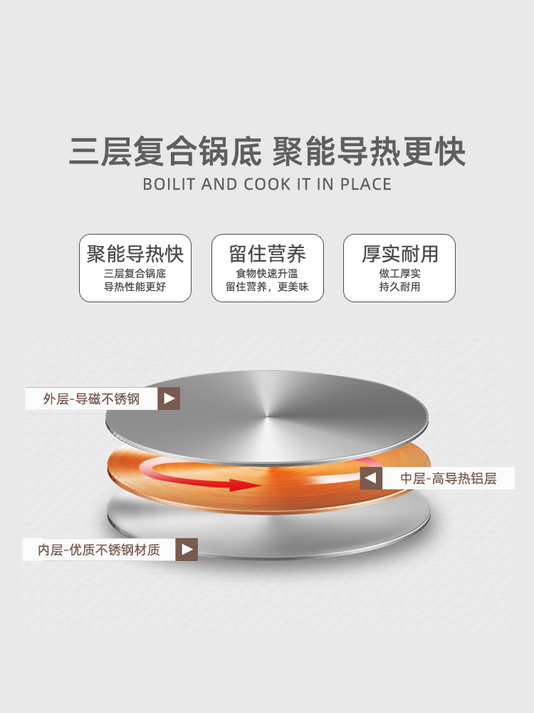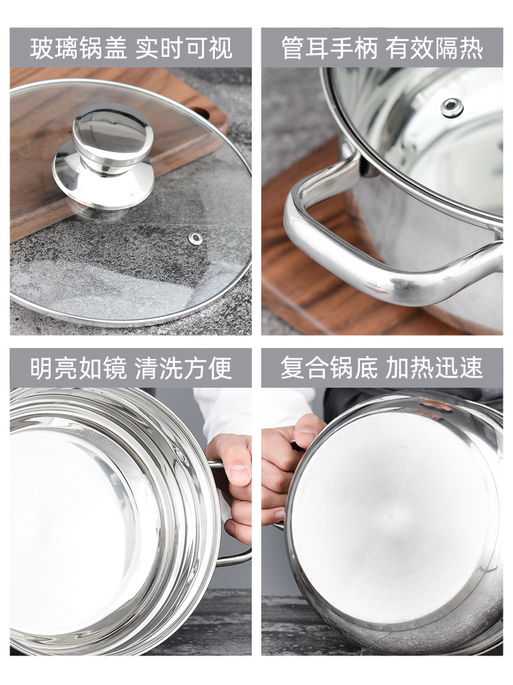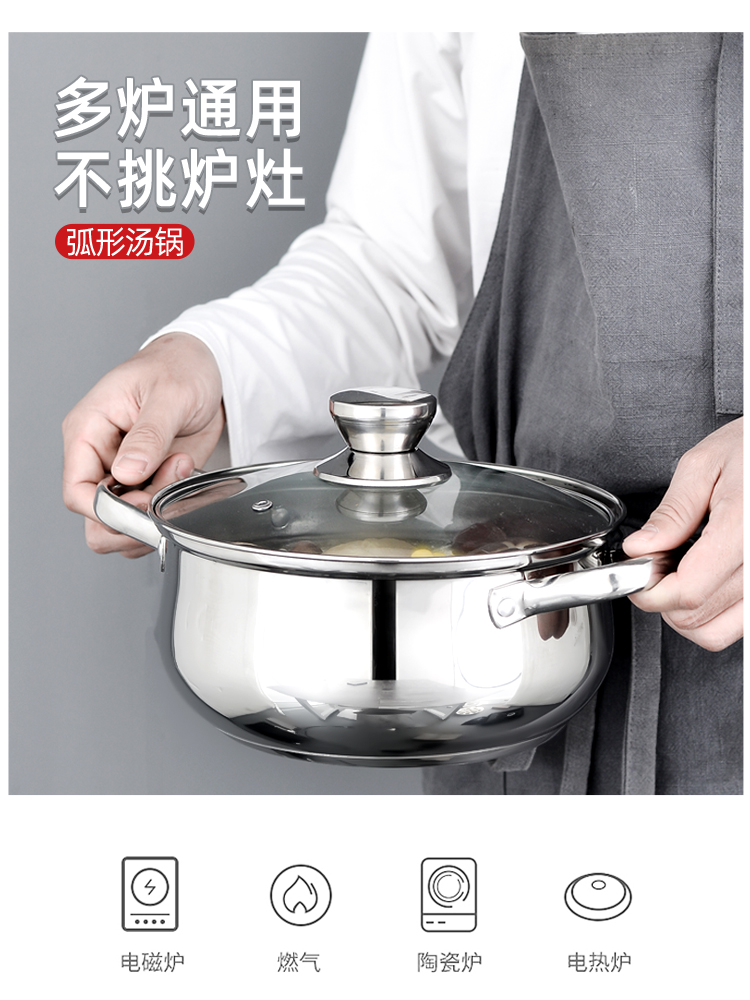 Soup pot multi-bottom stainless steel thickened household small cooking pot convenient porridge milk pot gas induction cooker pot pulling instant noodle pot
