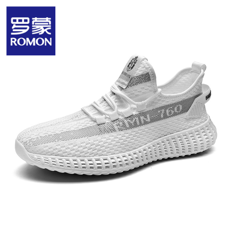 Romon 2022 new spring and autumn men's shoes flying woven lightweight sports mesh shoes all-match casual wear-resistant running shoes trendy