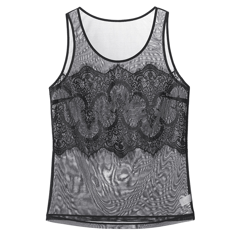 Huyu spring and summer new sleeveless splicing lace shirt mesh hollow beautiful back bottoming camisole loose inside