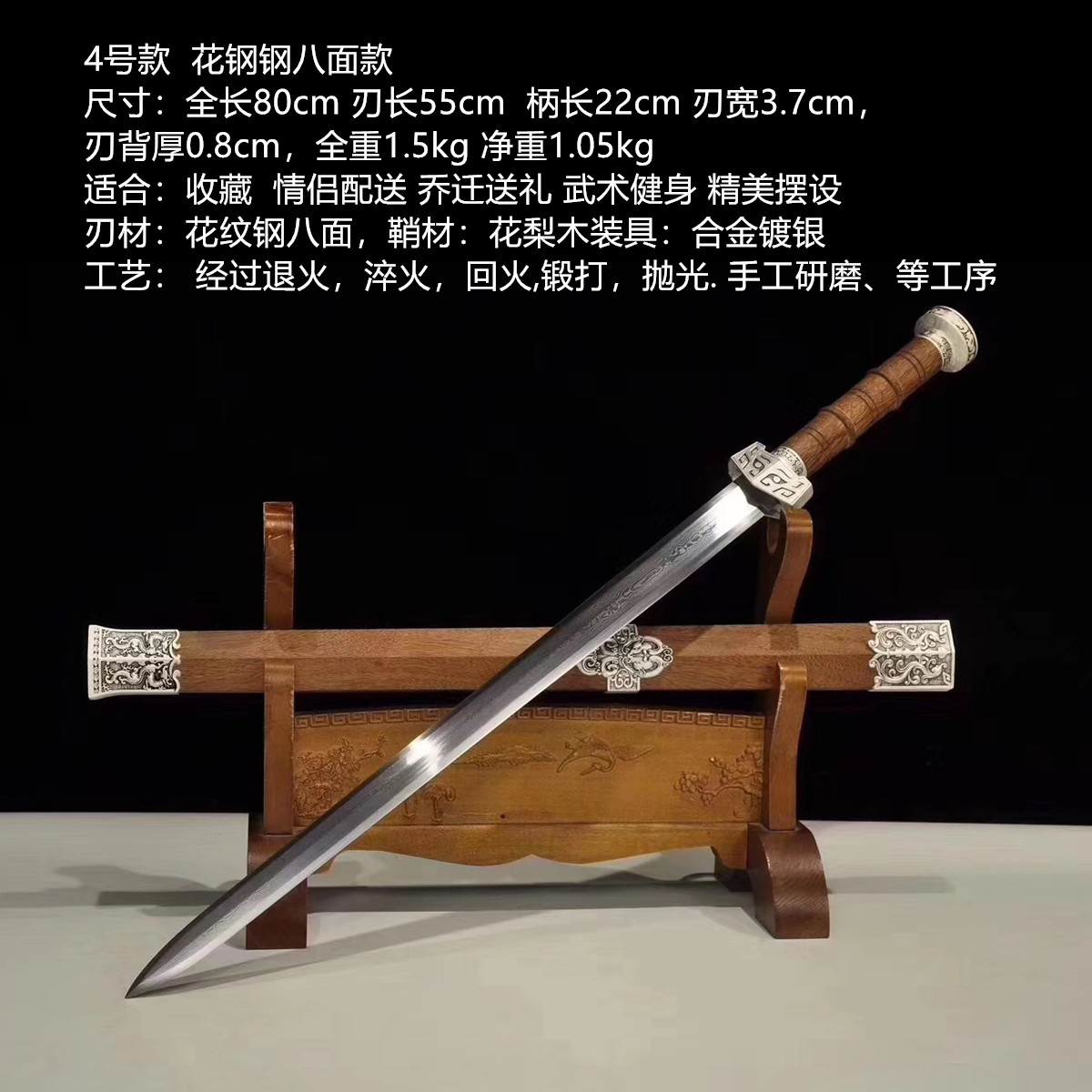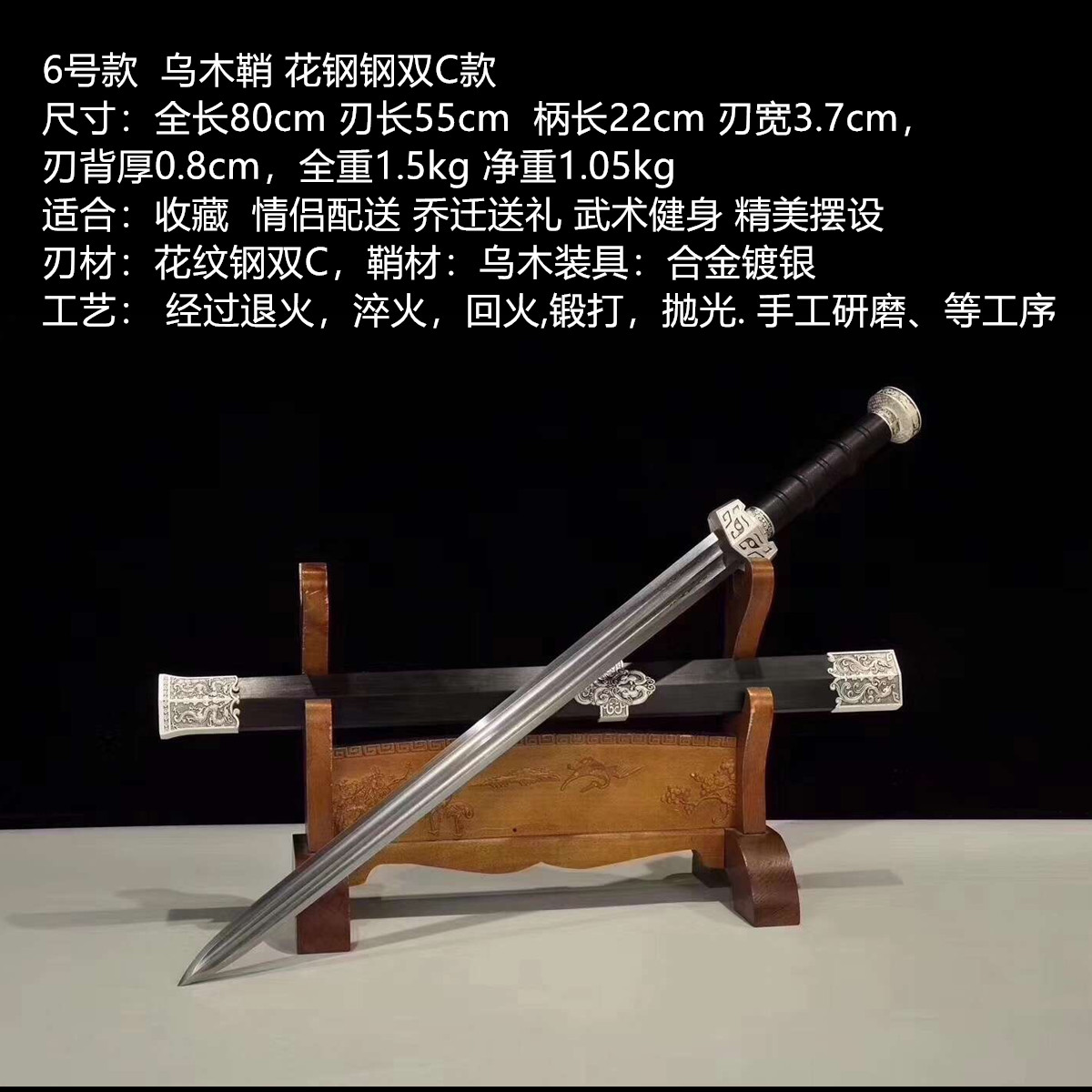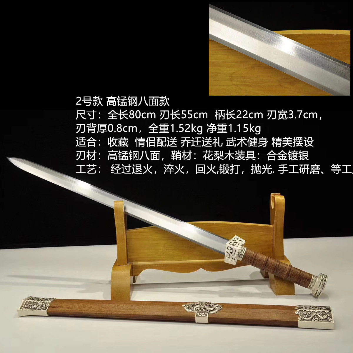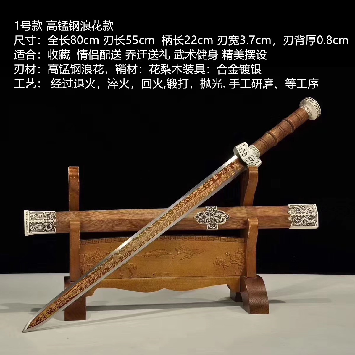 Longquan Jiajiang sword pattern steel Qin Jian high manganese steel middle section sword long sword Han sword one hard sword unedged