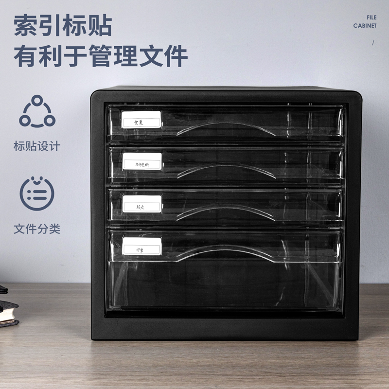 Deli 9774 filing cabinet desktop office file box A4 drawer type four-layer plastic file storage and sorting cabinet