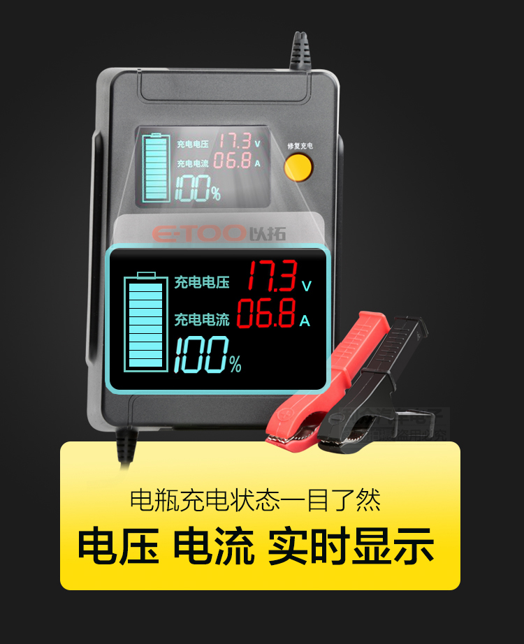 To top intelligent battery charger ET100 automatic car 12V24V battery battery charging repairer