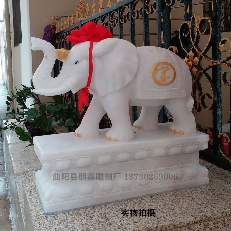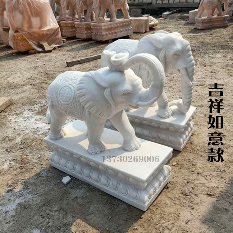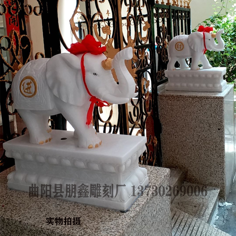 Stone sculpted elephant Han white jade elephant a pair of look at the door Town mansion Feng Shui Elephant Doorway Trick stones Absorbing Small Elephant for Home