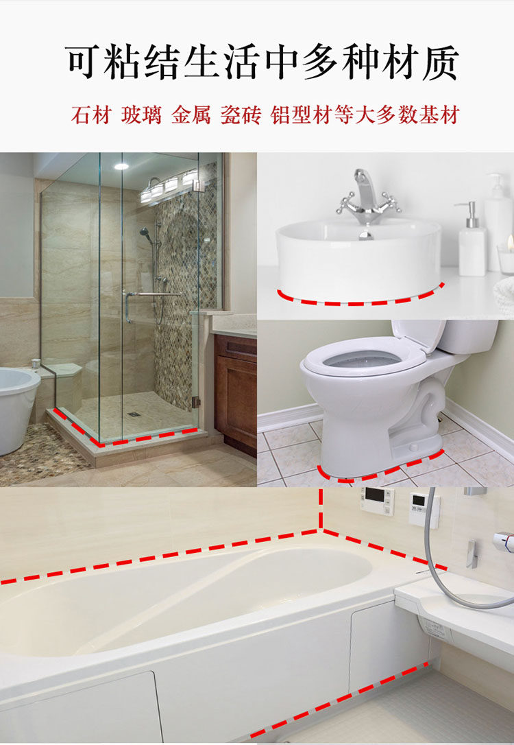 Glass glue Waterproof mildew kitchen toilet porcelain white black edge household window seam strong transparent silicone sealant