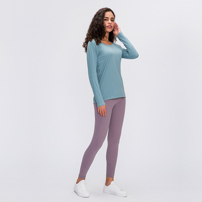 LULU Yoga Clothing Crewneck Yoga Clothing Women's Loose Leisure Breathable Fitness Tee Top Naked Long Sleeve