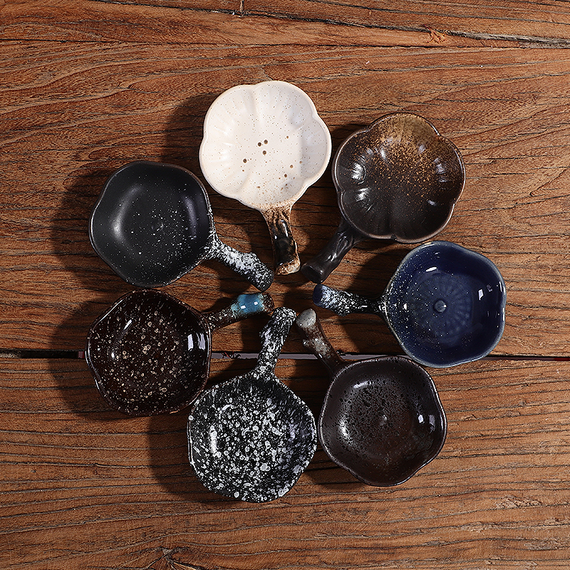 Handle chrysanthemum dish (moon point) Handle chrysanthemum dish (black pede) Handle chrysanthemum dish (quiet blue) Handle chrysanthemum dish (fog sea spot)