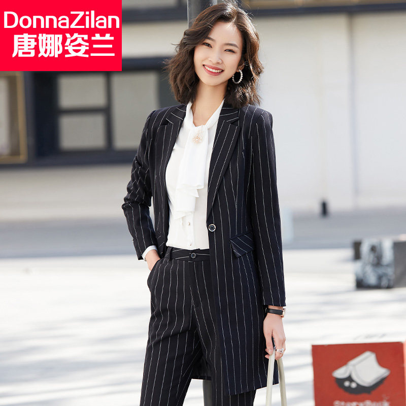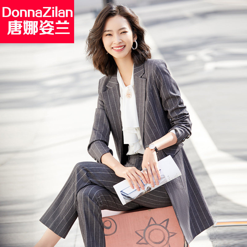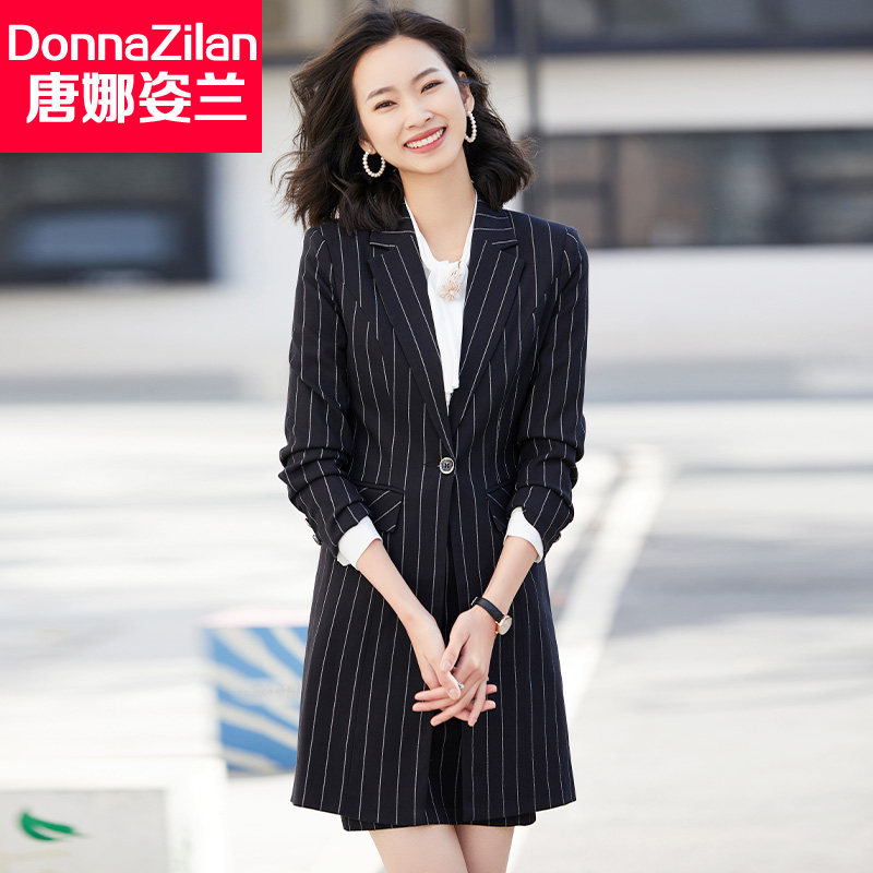 Mid-length striped small suit jacket women's autumn 2022 new Korean version of the high-quality temperament professional suit