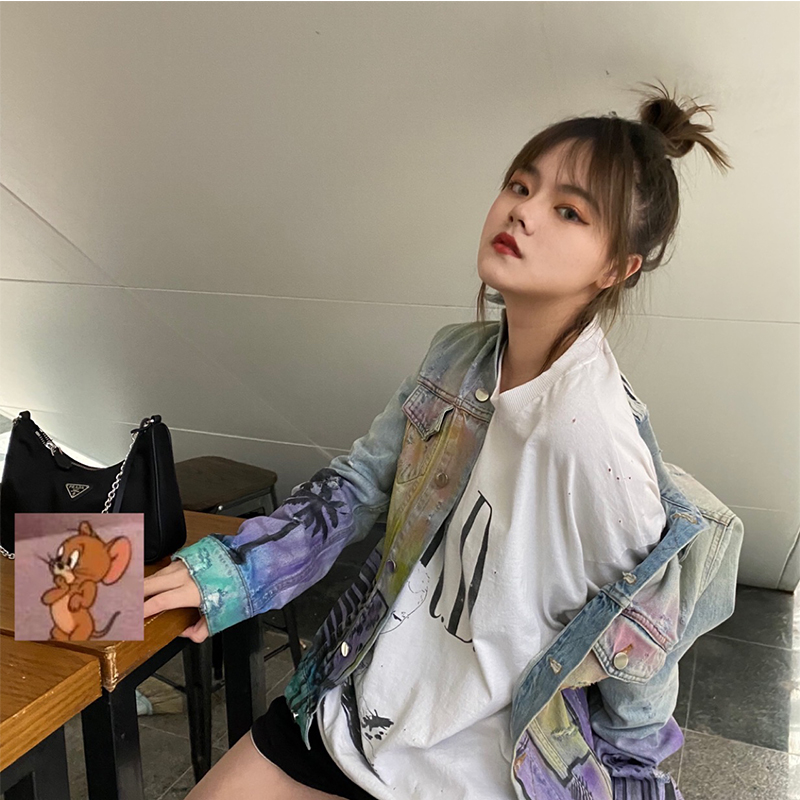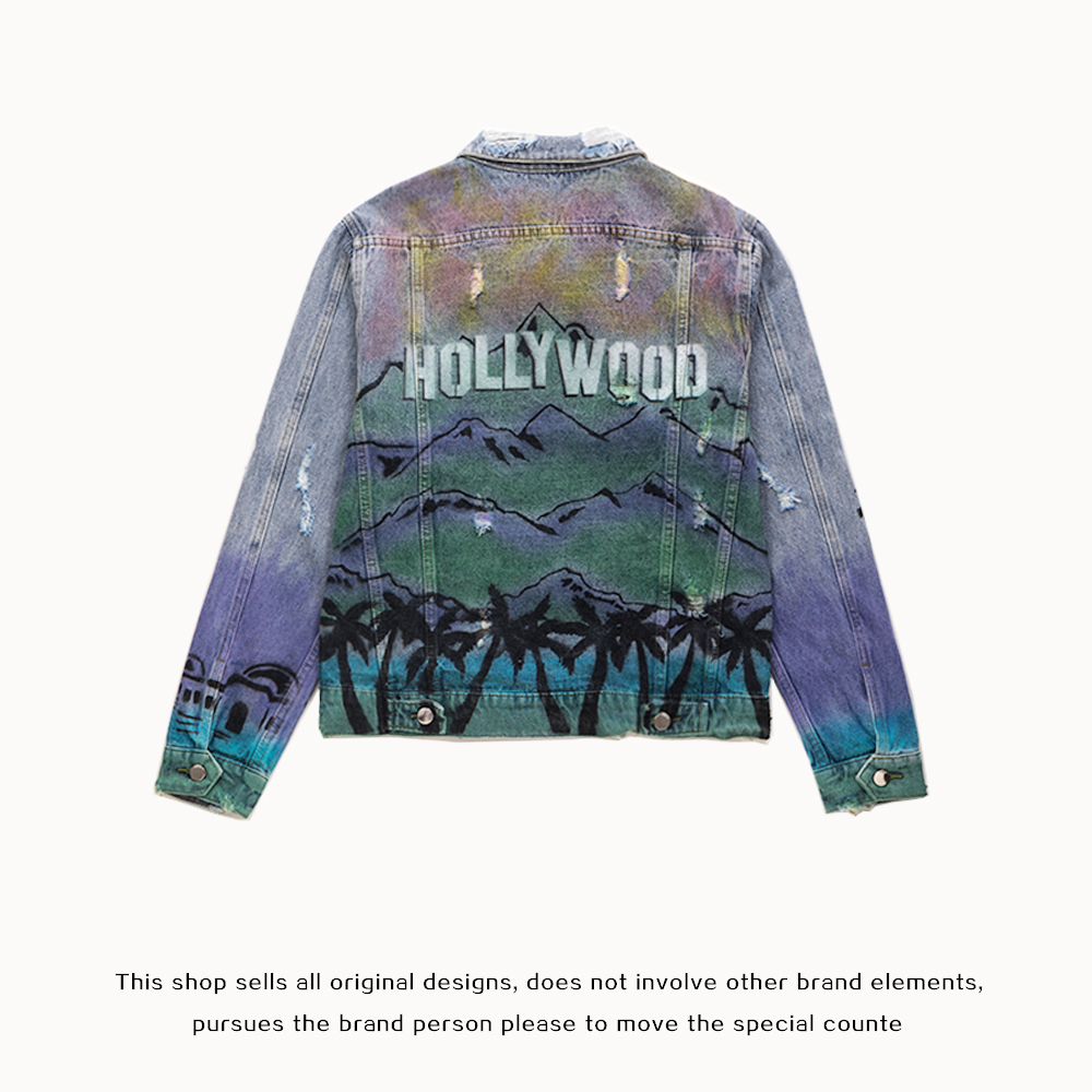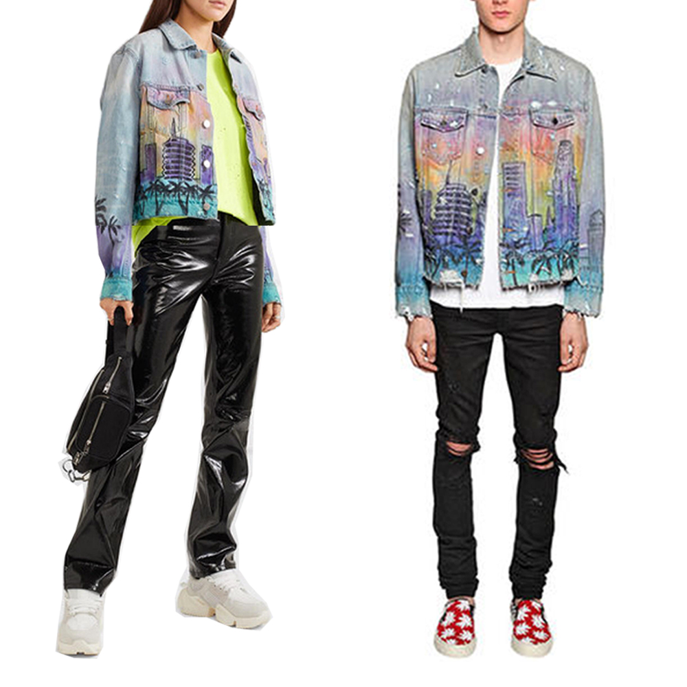 Fog amiri denim jacket coat men and women couples high street heavy industry graffiti printing wash hole coat tide