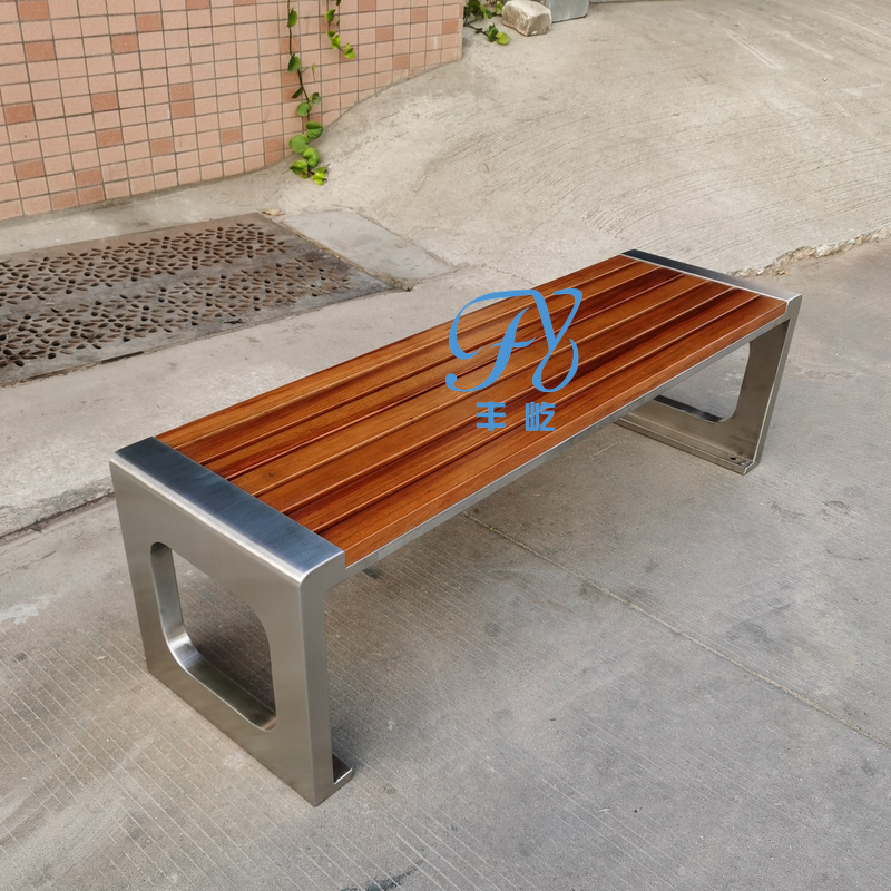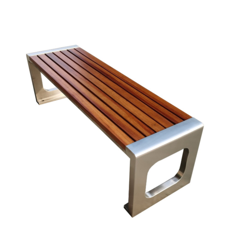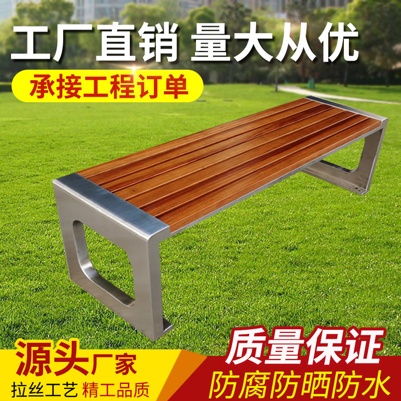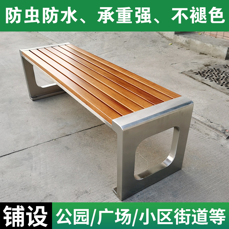 Park chair OUTDOOR BENCHES ANTI-CORROSIVE WOOD STRIP BENCH PATIO STAINLESS STEEL PUBLIC SEAT OUTDOOR SOLID WOOD CASUAL CHAIR