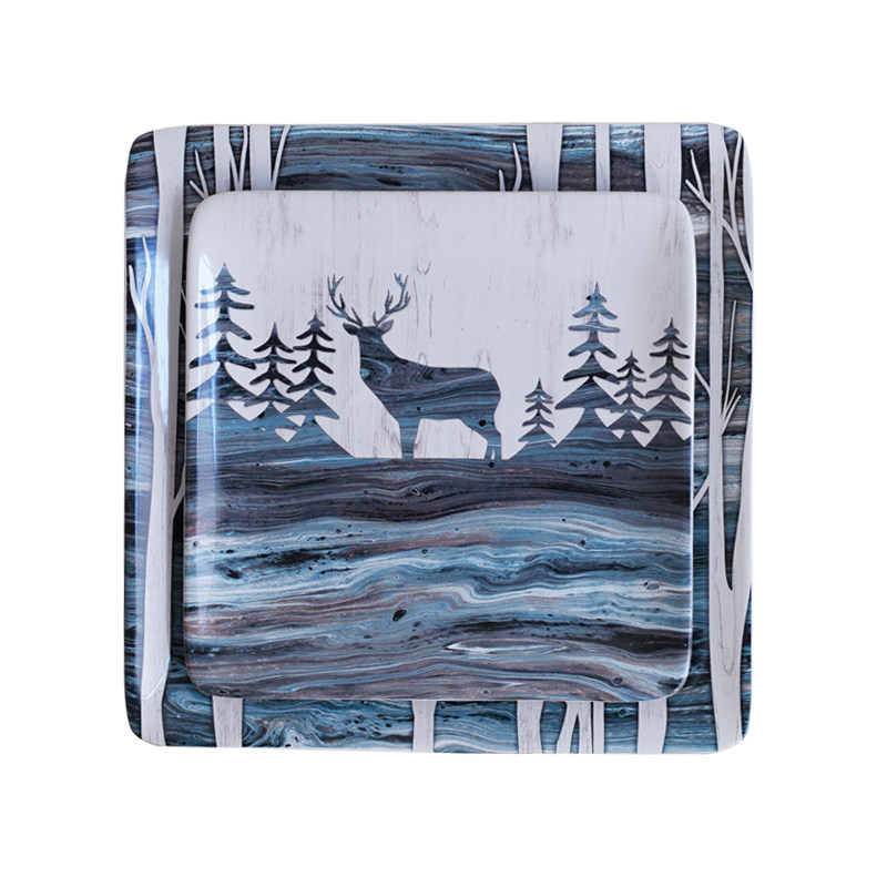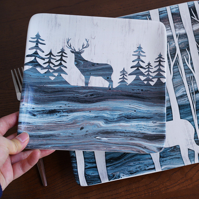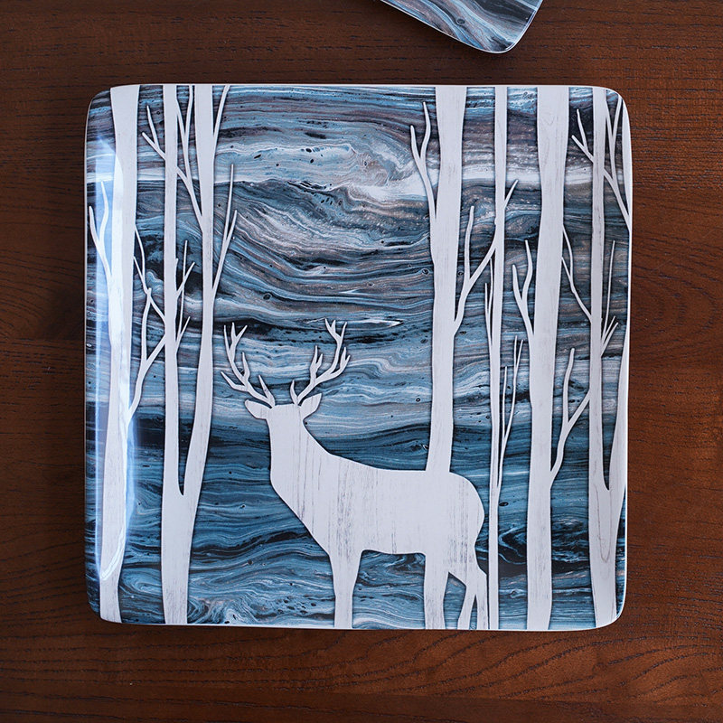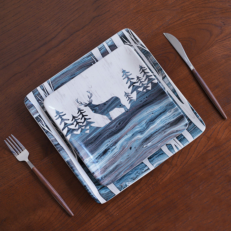 Export American Abstract Illustrations Style Forest Deer Western Dining Ceramic Cutlery Steak Dish Pasta Party Swing Pan-Taobao