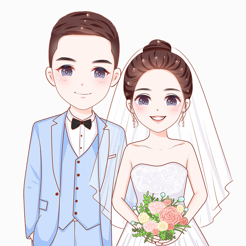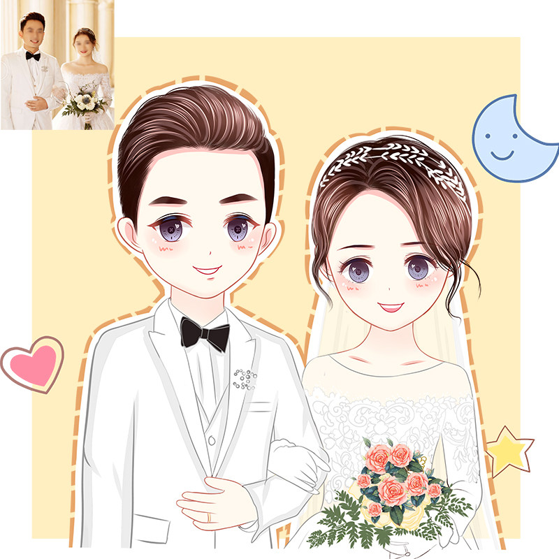 Q version of the avatar design set to make photos to hand-drawn cartoon character image comic illustration couple wedding ceremony