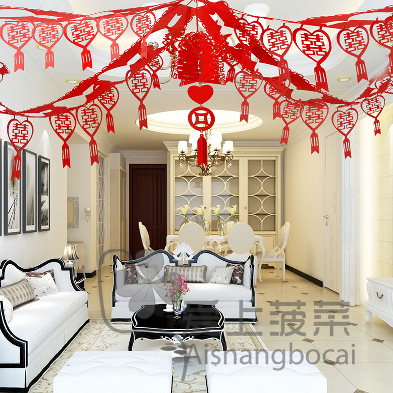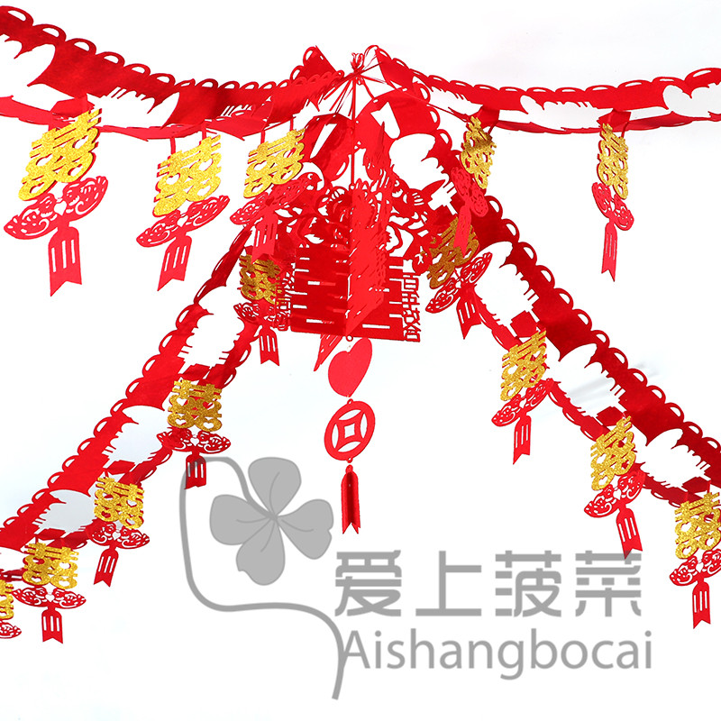 Wedding celebration supplies wedding room decoration creative living room bedroom room layout non-woven fabric happy word pull flower lantern set