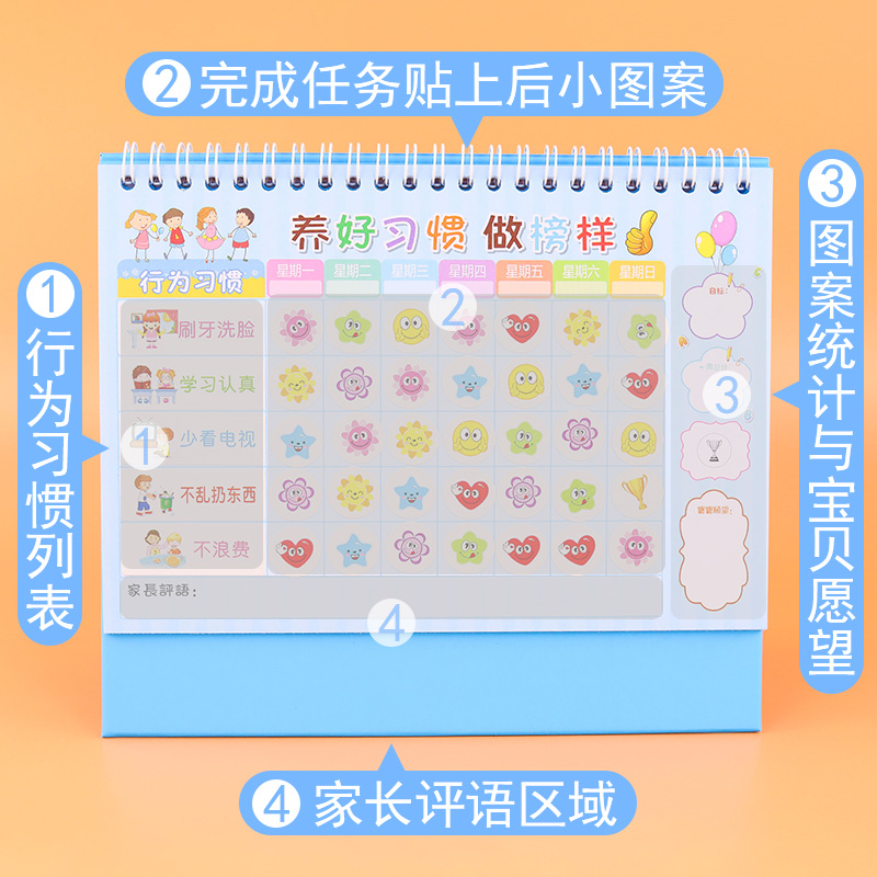 Children's growth self-discipline table reward stickers home praise stickers reward and punishment reward and punishment score card primary school students 3-12 years old good habits life behavior develop learning baby record performance plan this book