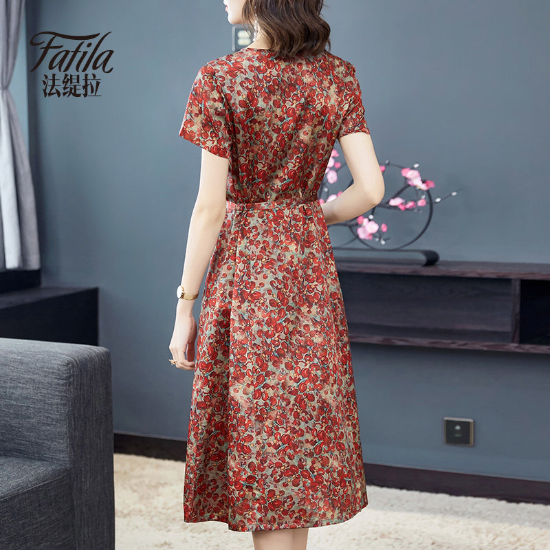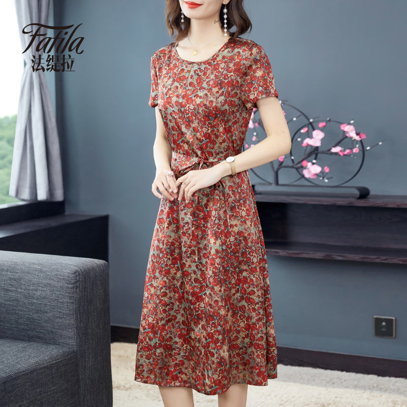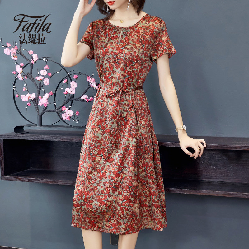Hangzhou Crushed Flowers Young's Heavy Pound Genuine Silk Dress Woman Xia 2021 New body Slim Mulberry Silk Dresses