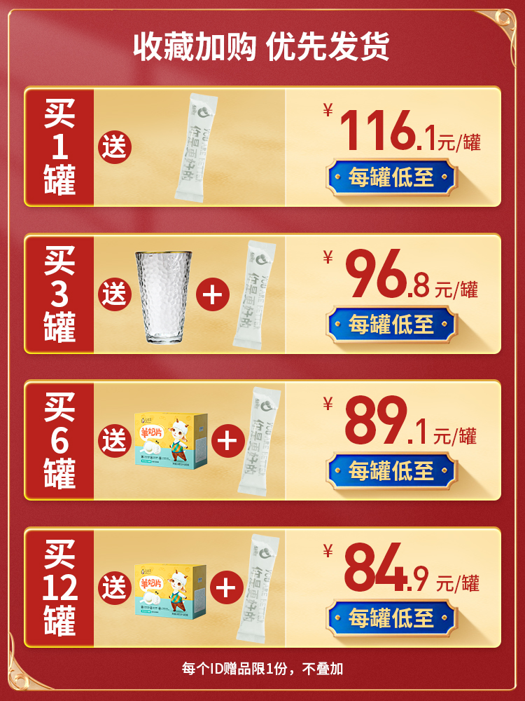 (1 can) Probiotic High Calcium Goat Milk Powder (to make the stomach and intestines lively) (2 cans of gift box) Probiotic High Calcium Goat Milk Powder 730g*2 (not involved in buying and delivering) (1 can) Middle-aged and elderly goat milk powder (guarding the "heart" power) (2 cans gift box) Middle-aged and elderly cane-free goat milk powder 730g*2 (not involved in buying and delivering) (1 can) Women's goat milk powder (with bird's nest acid collagen peptides) (1 can) IgG goat milk protein goat milk powder (New Zealand milk source) (do not shoot selling point) no cane sugar added (do not shoot selling point) high quality milk source (do not shoot selling point) Probiotics (do not shoot selling point) high in calcium