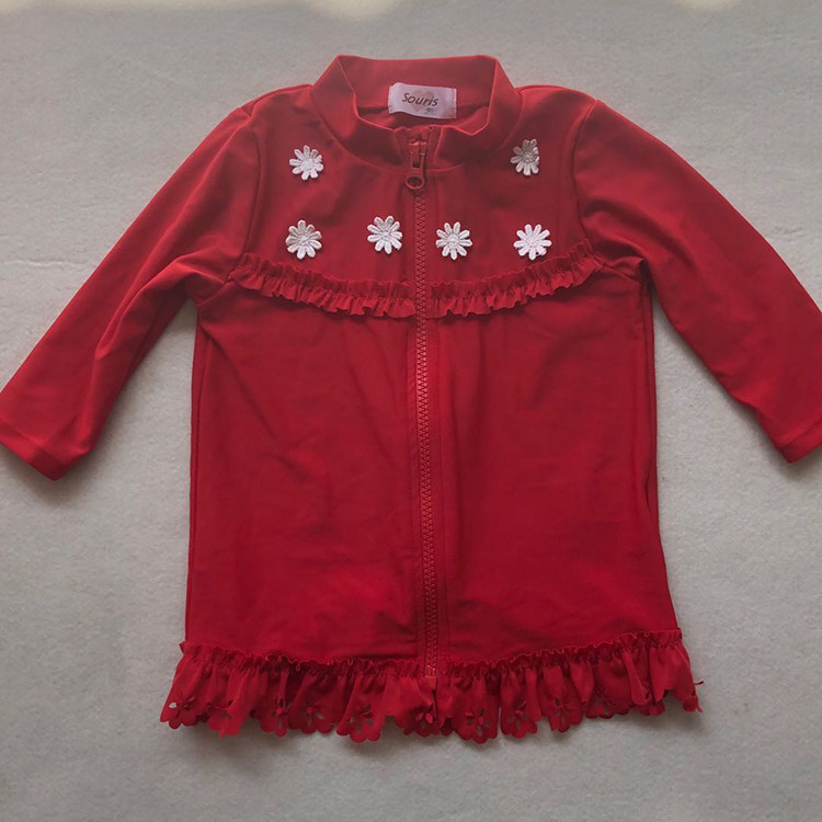 Exported Japanese boys and girls baby sunscreen zipper lace lace long sleeve anti-UV swimsuit