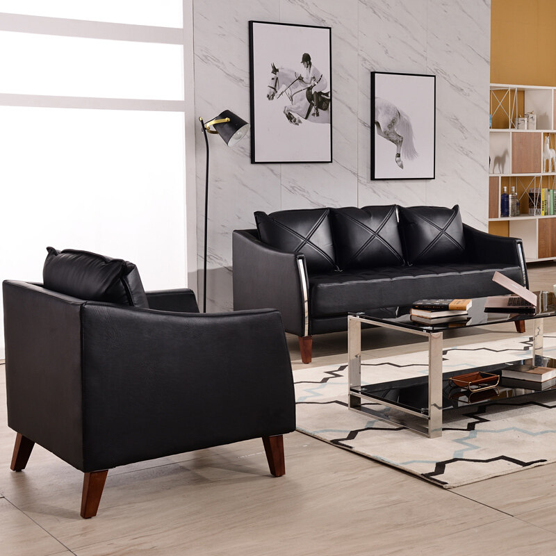 Office reception room sofa leather new Chinese three-person office sofa coffee table combination business reception sofa