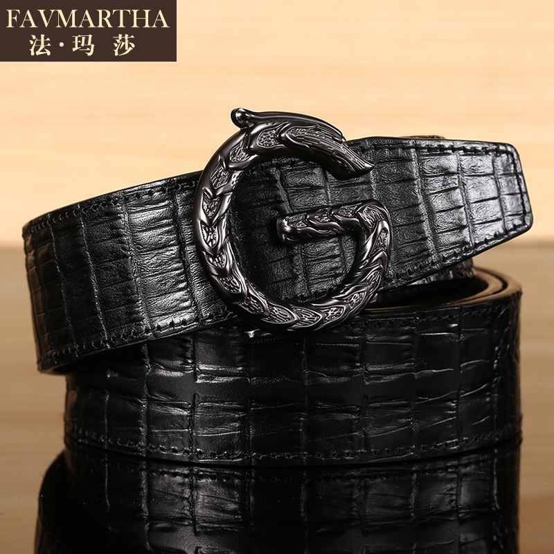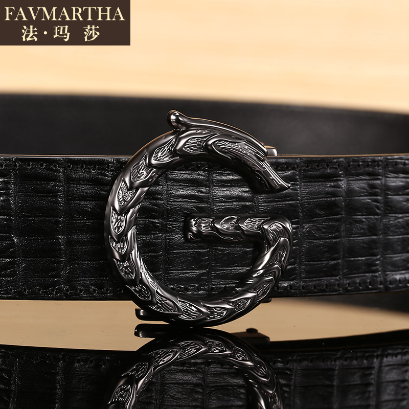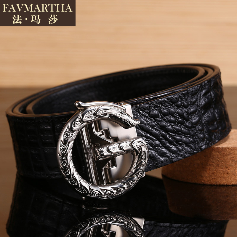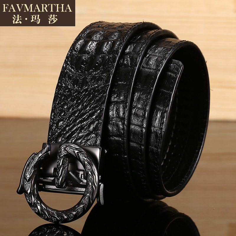 Crocodile Print Leather Strap Men Individuality Young Man Belt Tide Pure Cow Leather Automatic Buckle Genuine Leather Korean Version Pants With Luxury