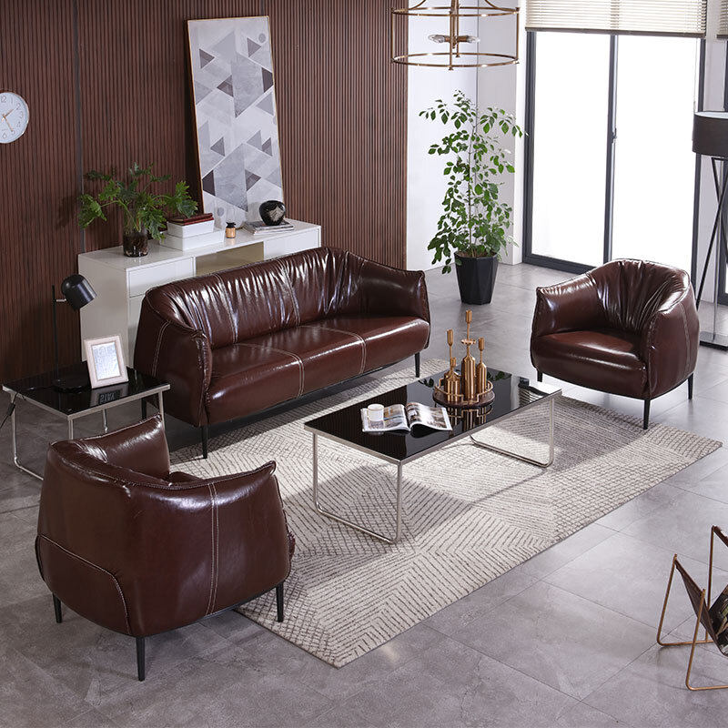Office sofa Modern minimalist Business Guest area Reception room Genuine Leather Trio office sofa tea table Composition