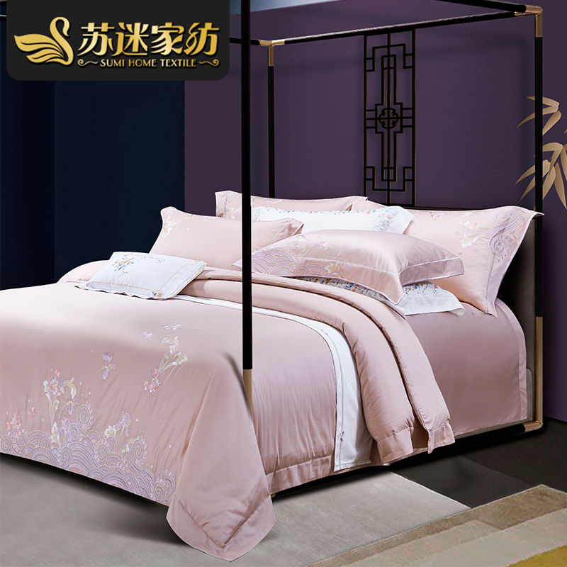 100 cotton embroidery classical flower four suites of single suit of Chinese pink Chinese bedding